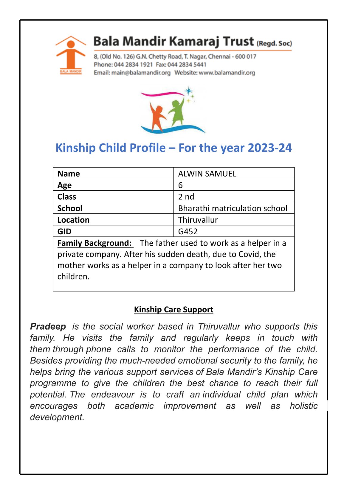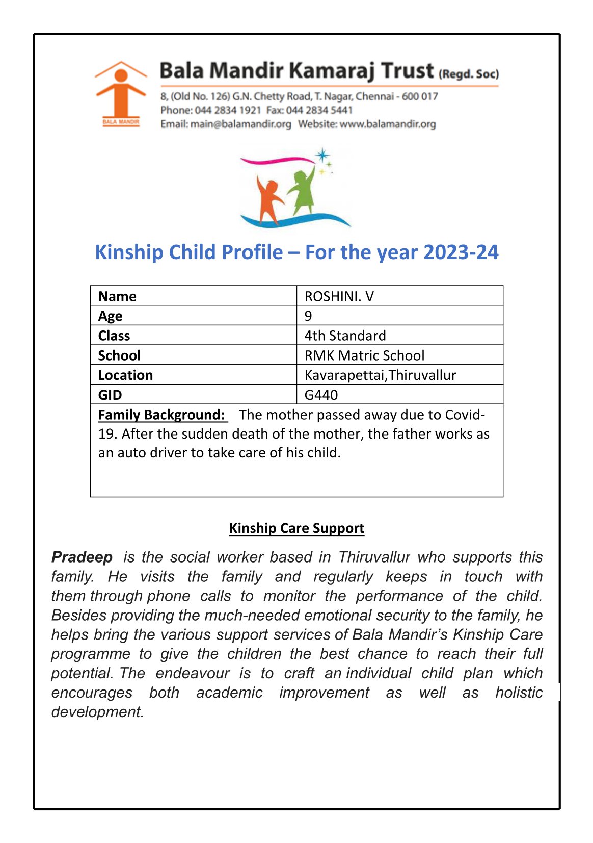 ABOUT THE BALA MANDIR KAMARAJ TRUST (BMKT):