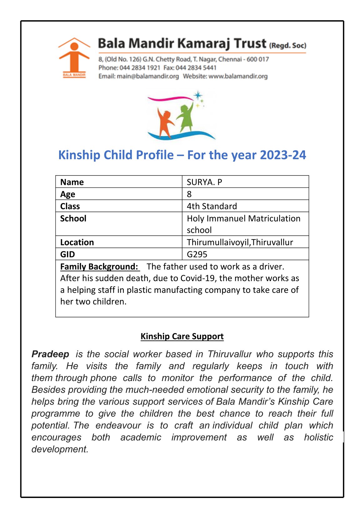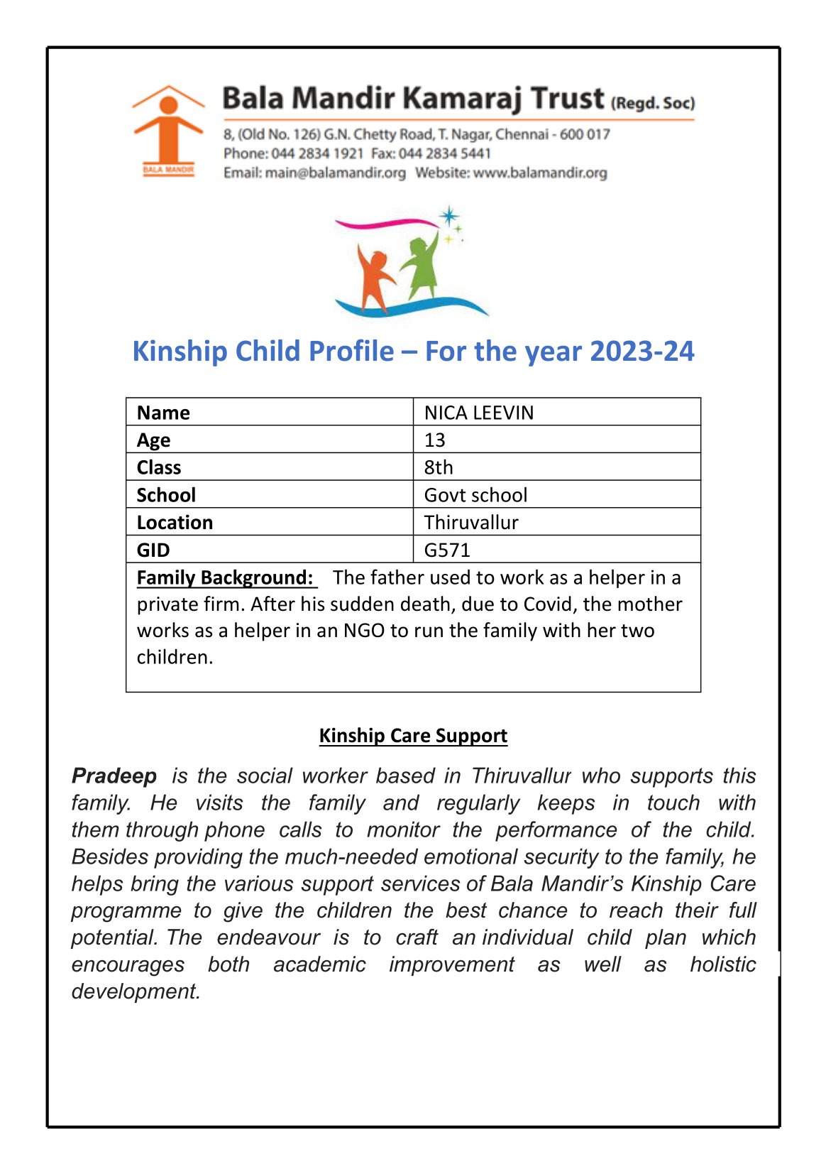 ABOUT THE BALA MANDIR KAMARAJ TRUST (BMKT):