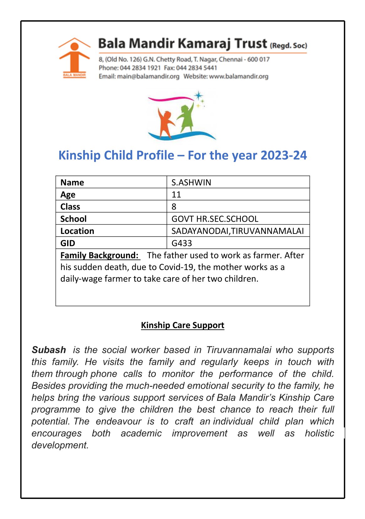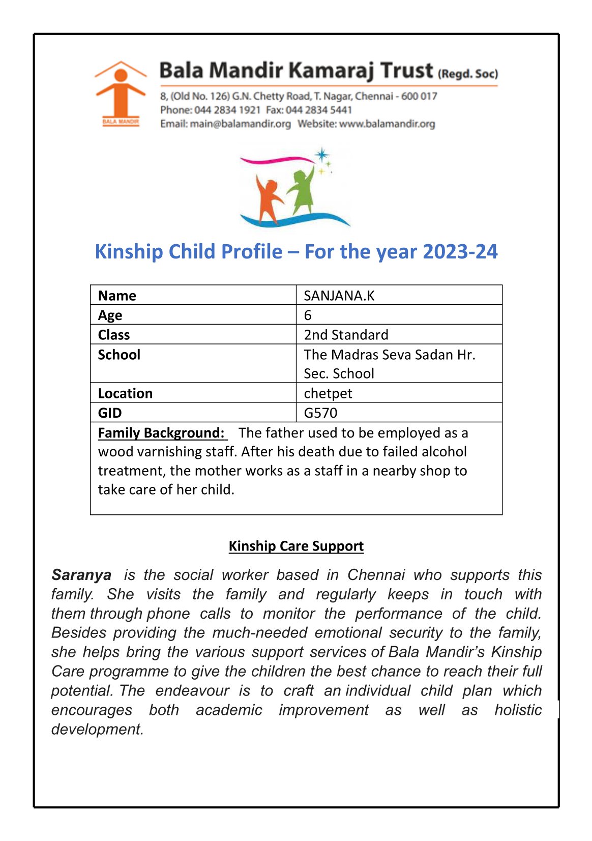 ABOUT THE BALA MANDIR KAMARAJ TRUST (BMKT):