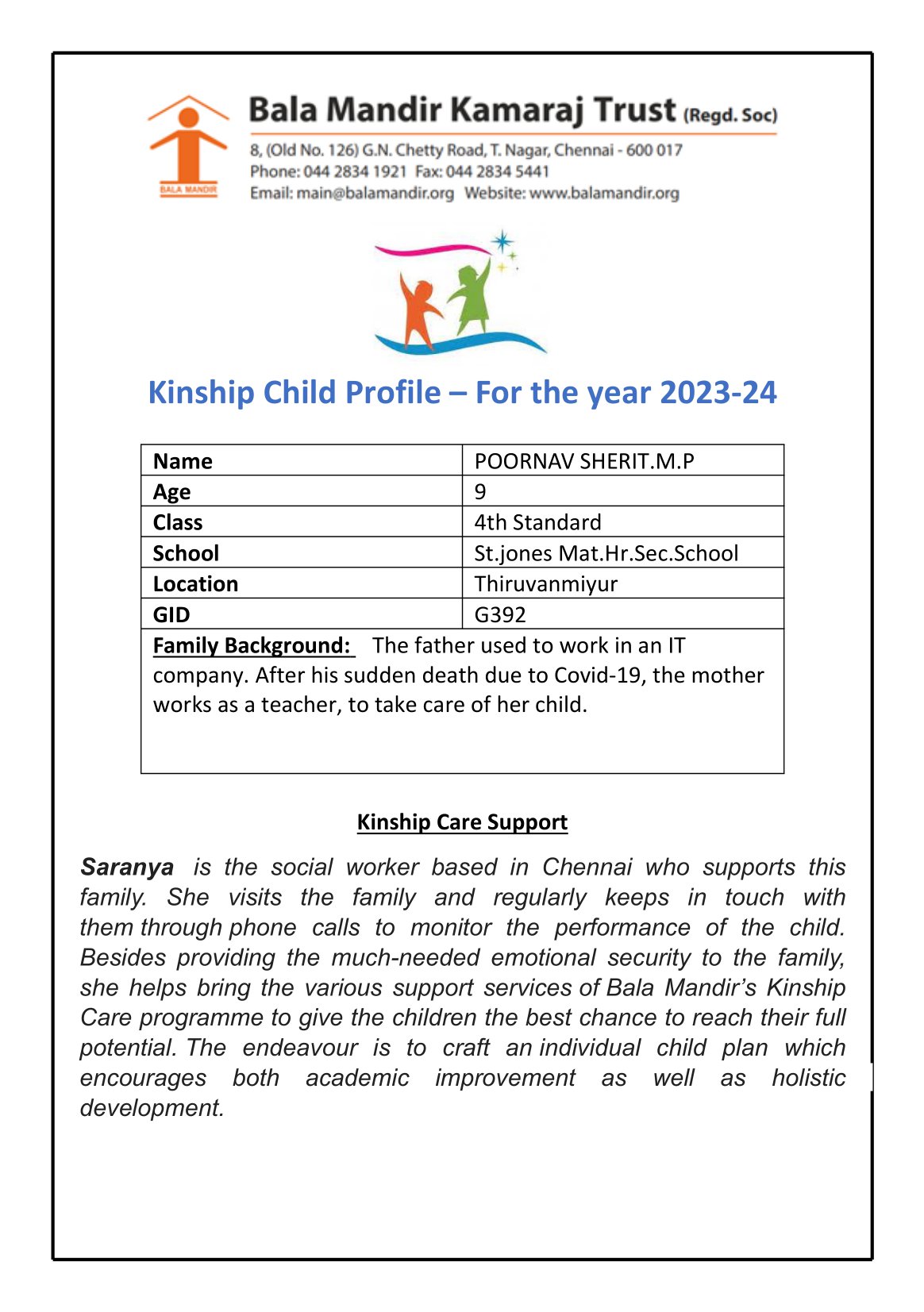 ABOUT THE BALA MANDIR KAMARAJ TRUST (BMKT):