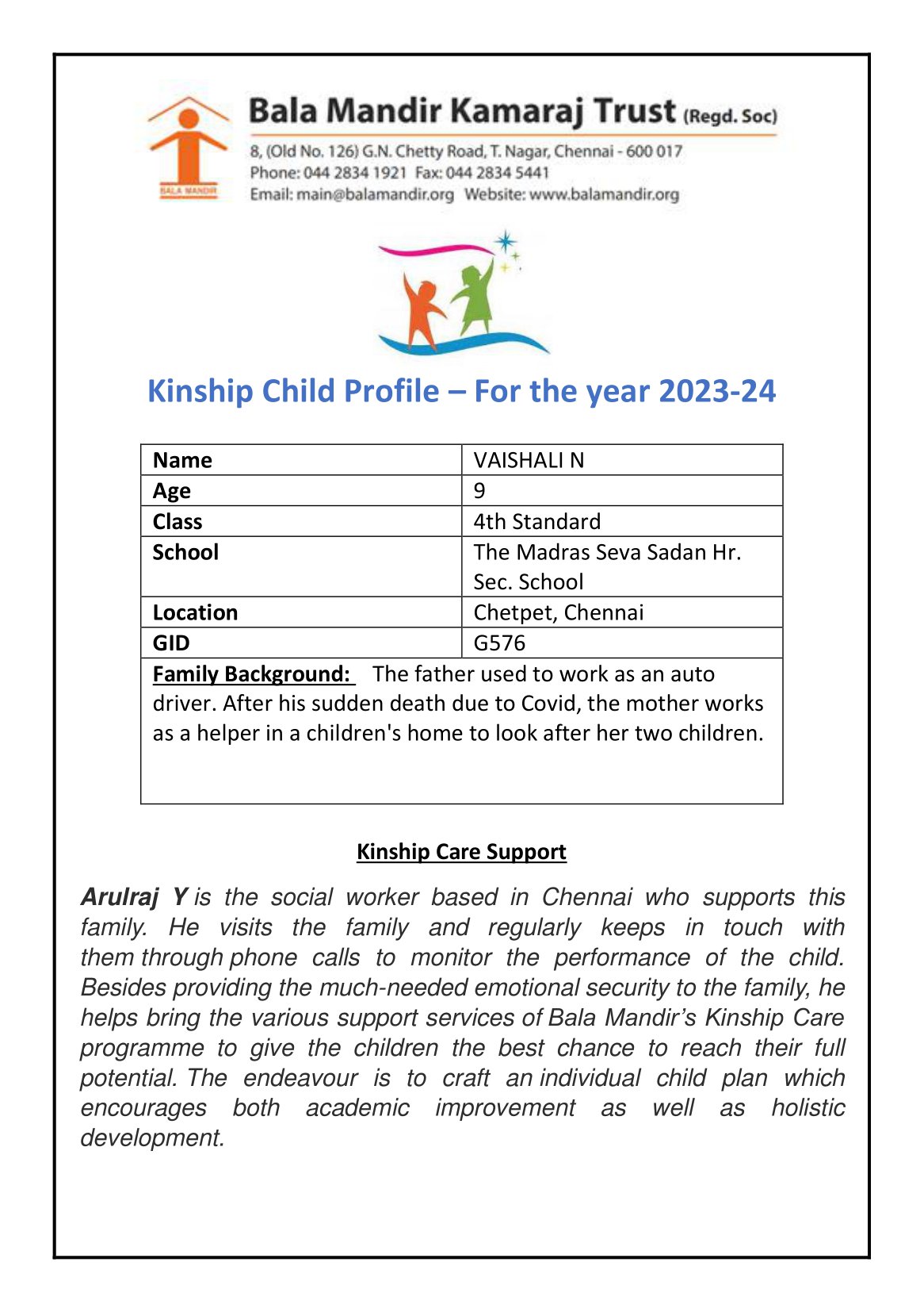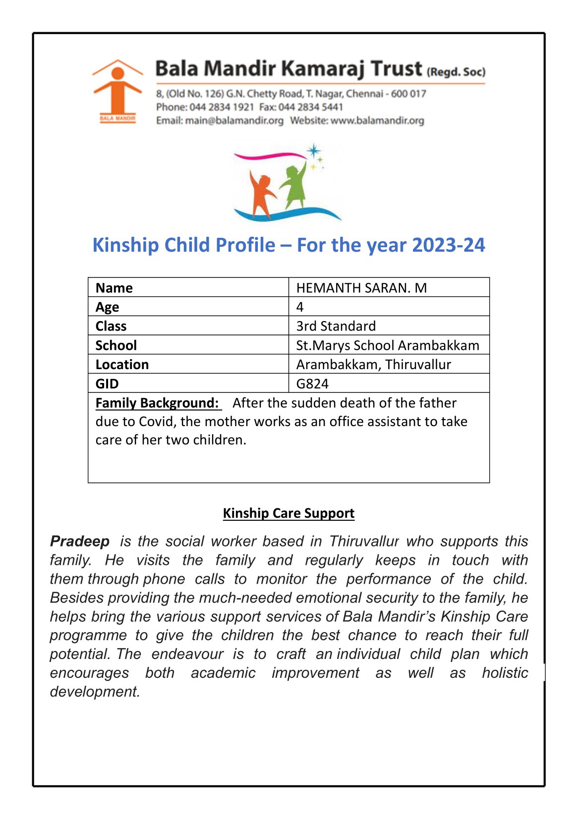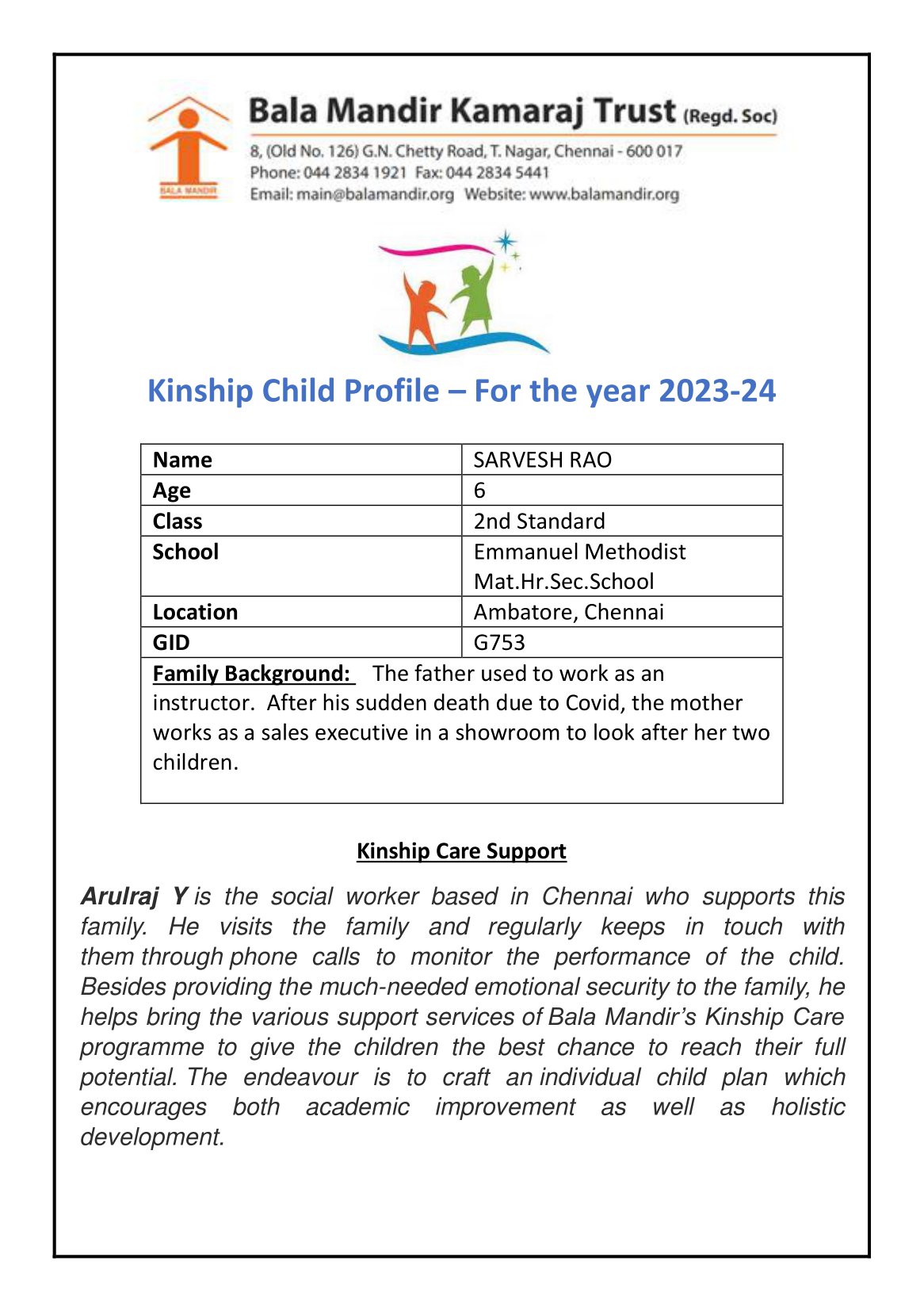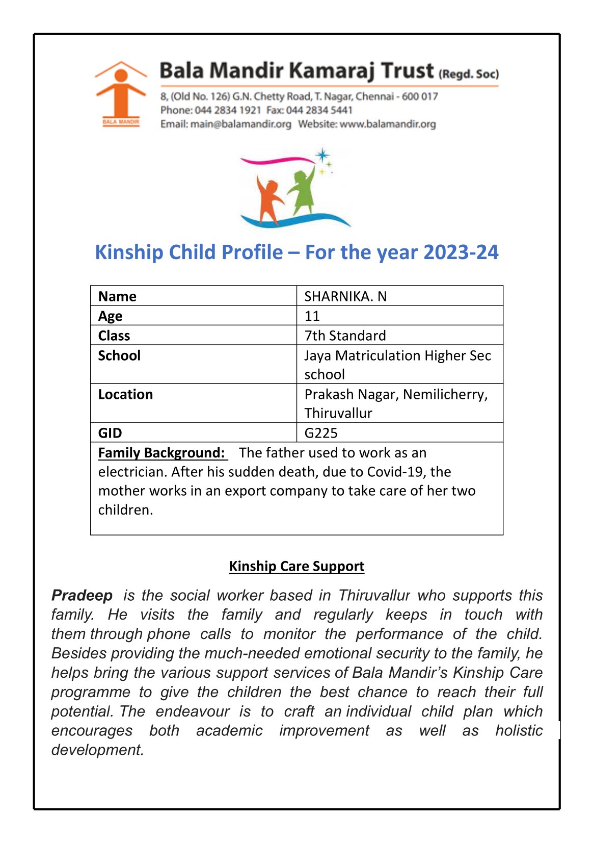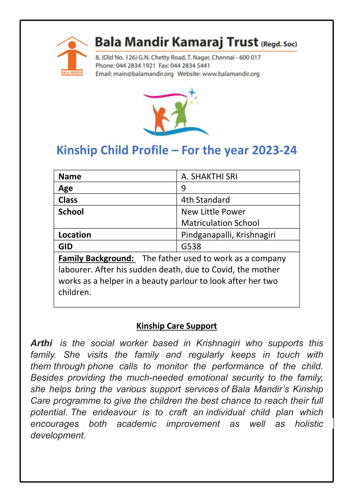 ABOUT THE BALA MANDIR KAMARAJ TRUST (BMKT):