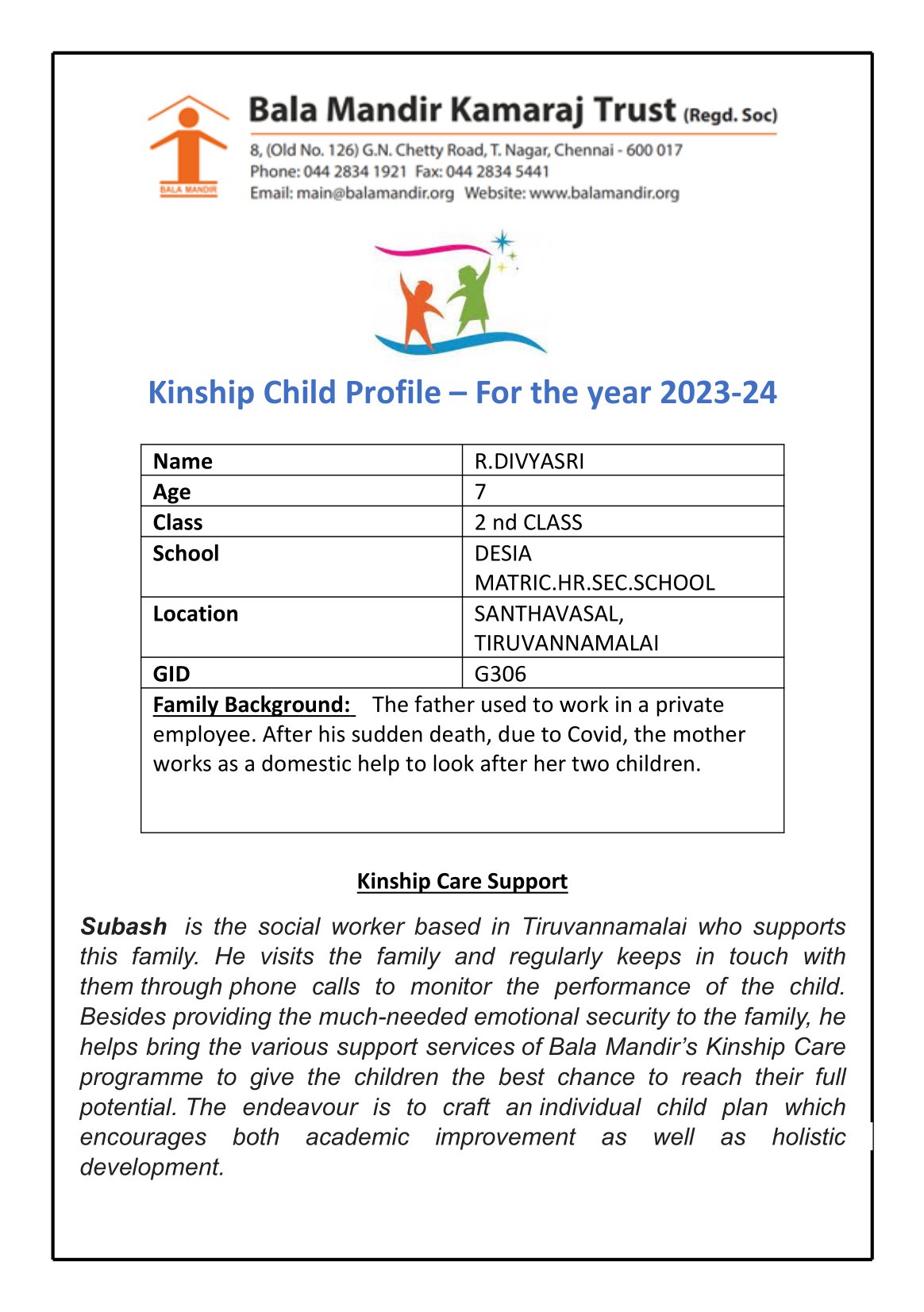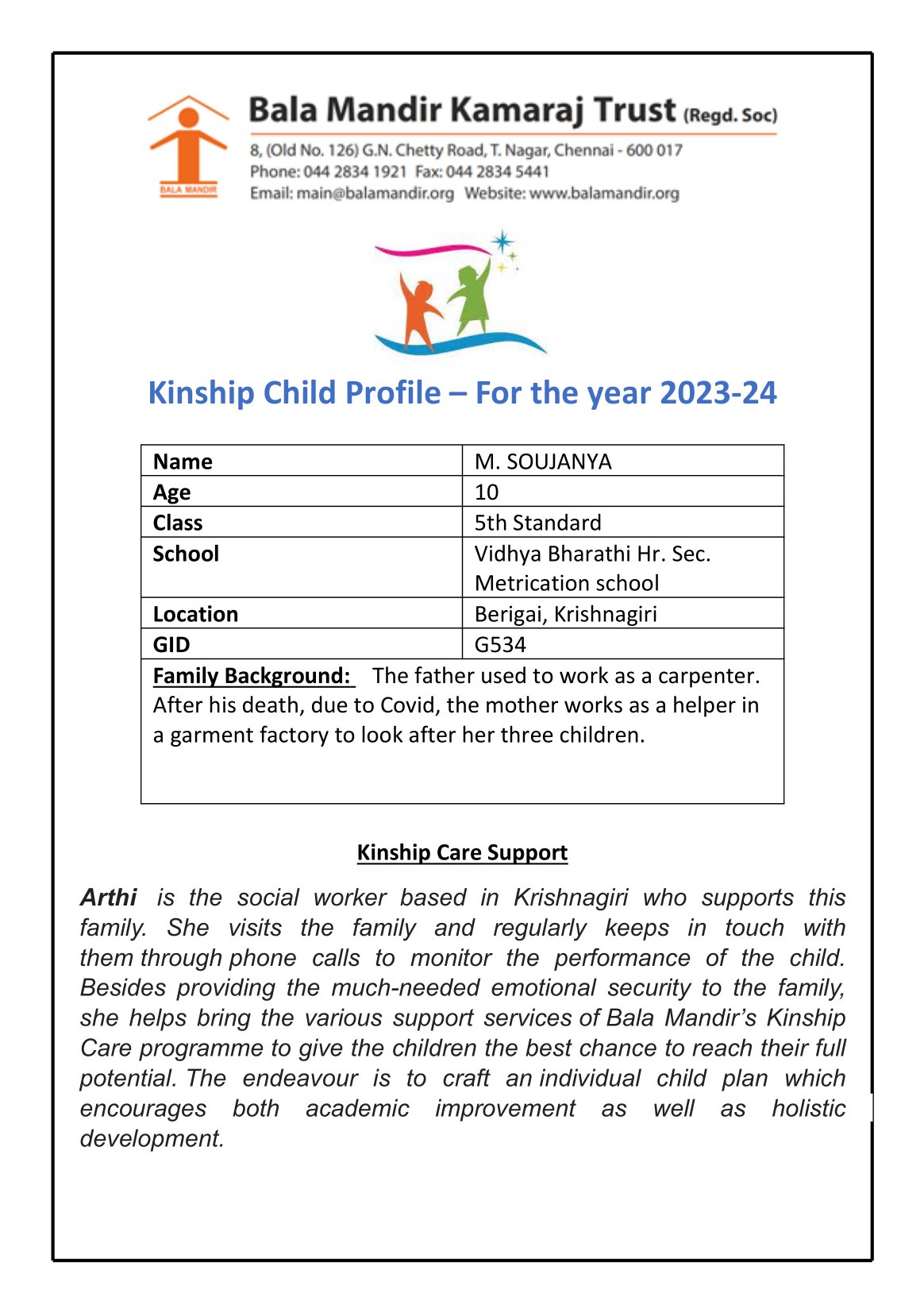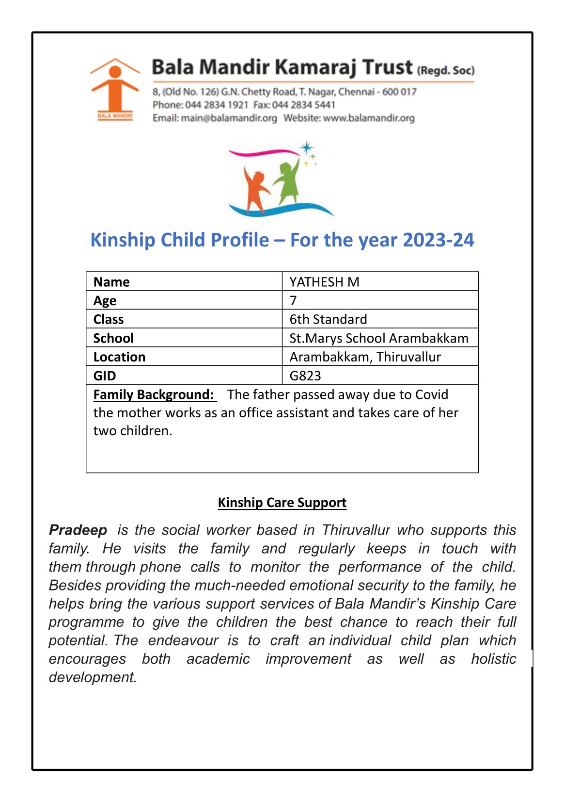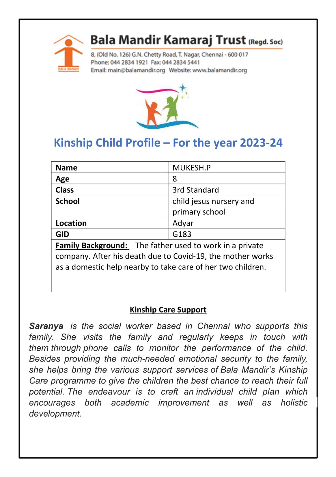 ABOUT THE BALA MANDIR KAMARAJ TRUST (BMKT):