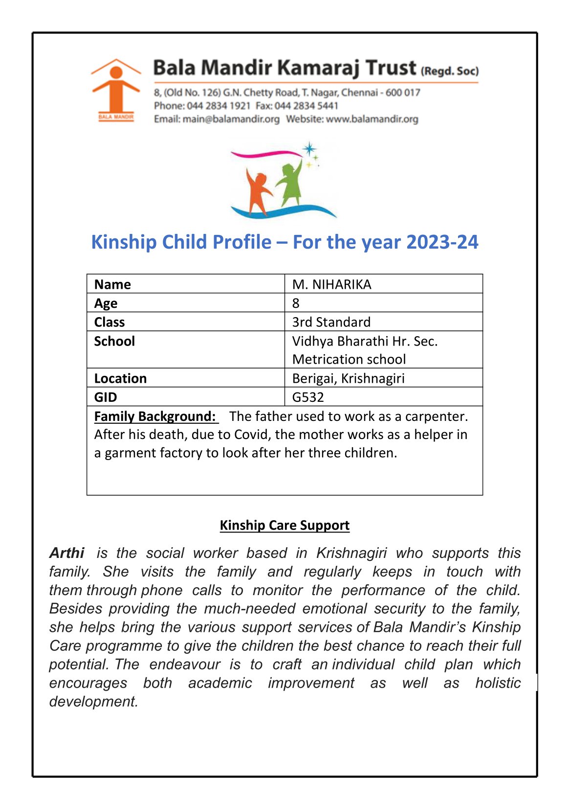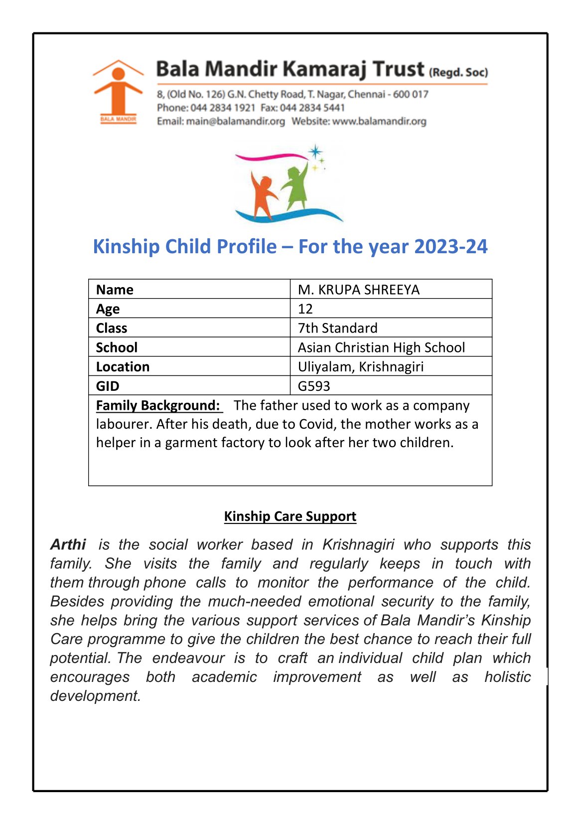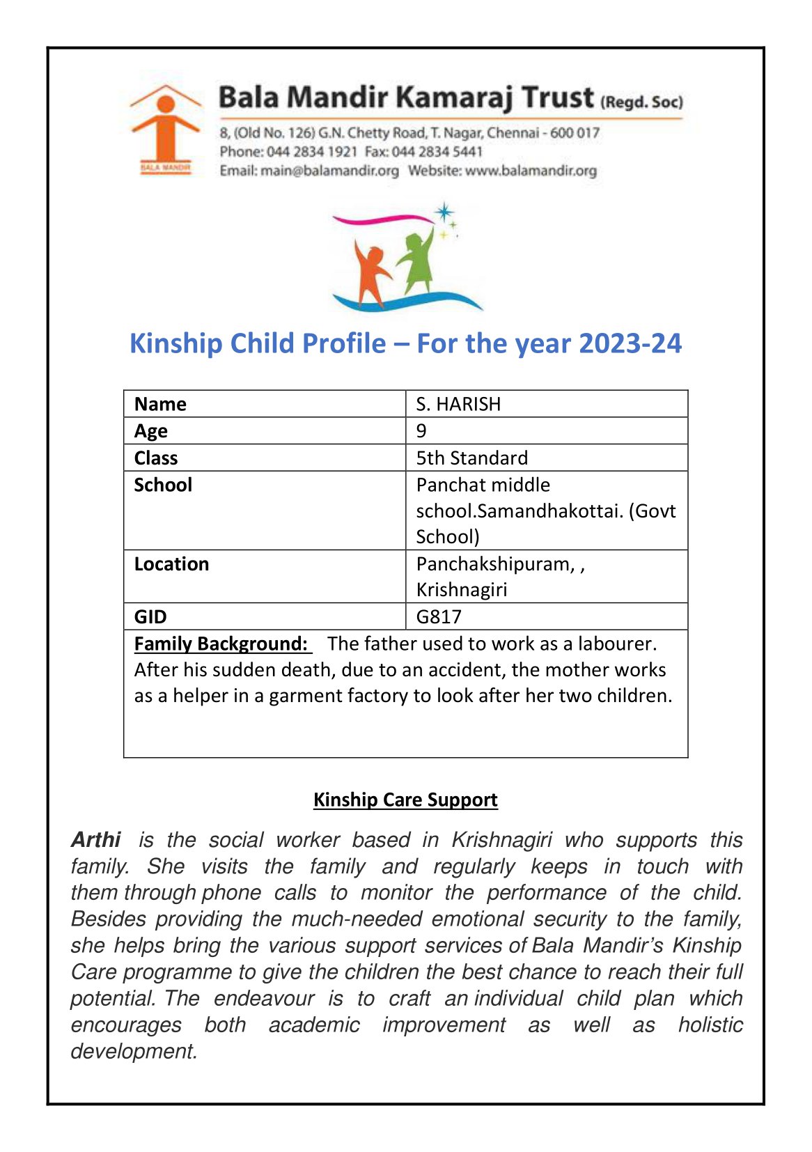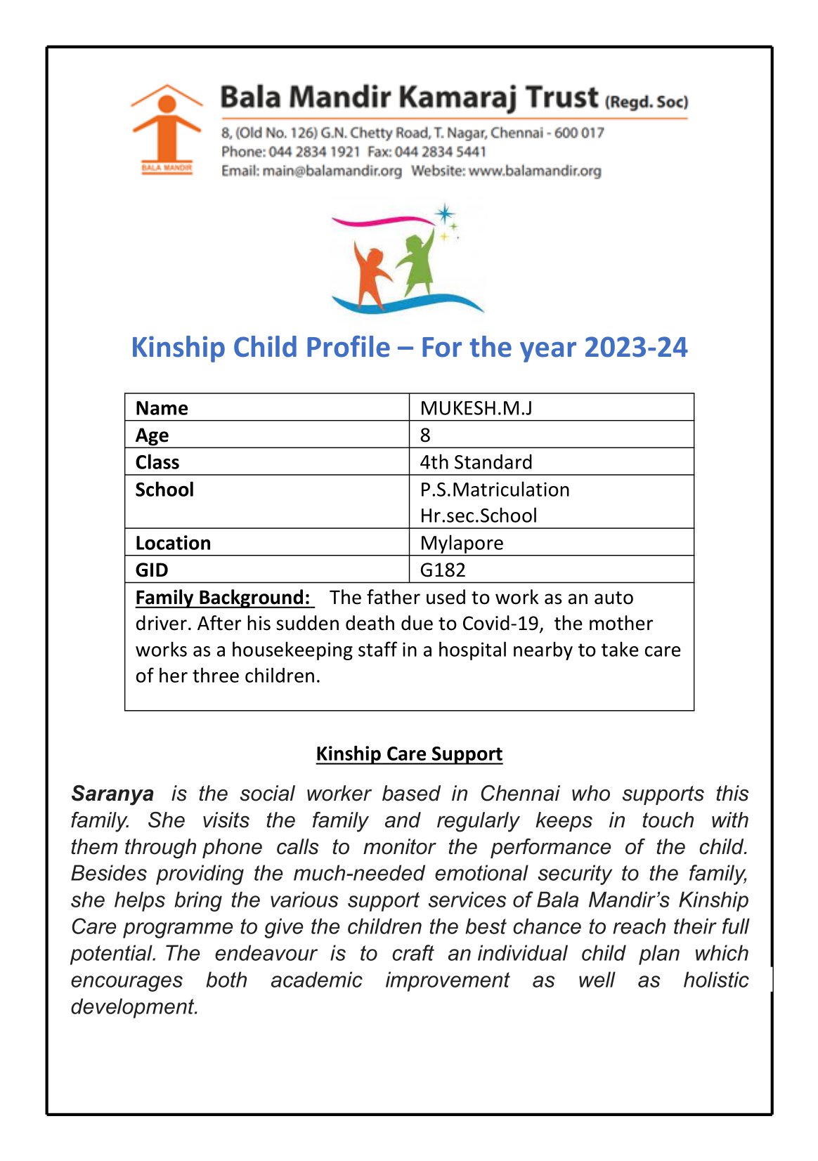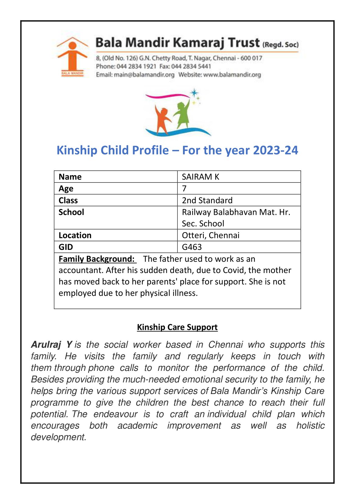 ABOUT THE BALA MANDIR KAMARAJ TRUST (BMKT):