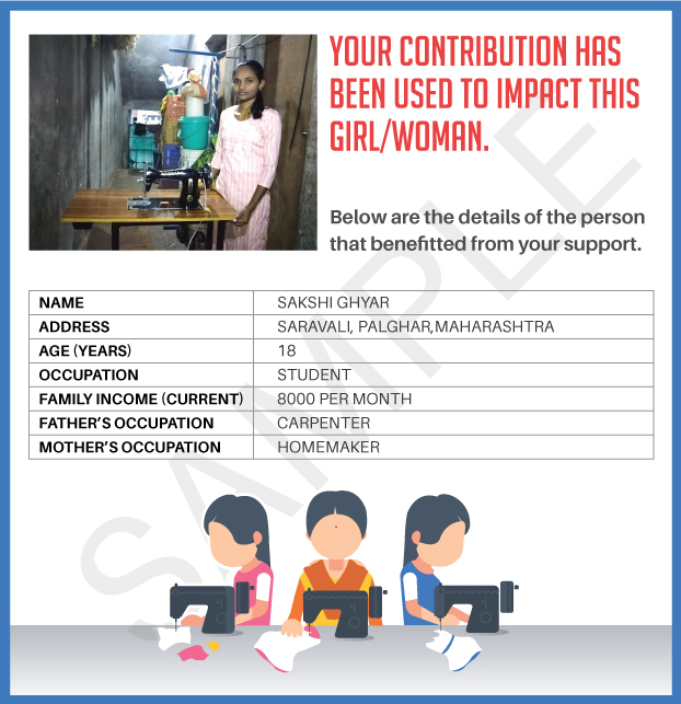 The fact that it costs just INR 7500 to impact a girl/woman is amazing. I was surprised to learn that with just this much, they can have a sustainable livelihood. Through this campaign, I aim to transform the lives of many young girls and women and their families. This will make them financially independent and impact their families for generations to come.