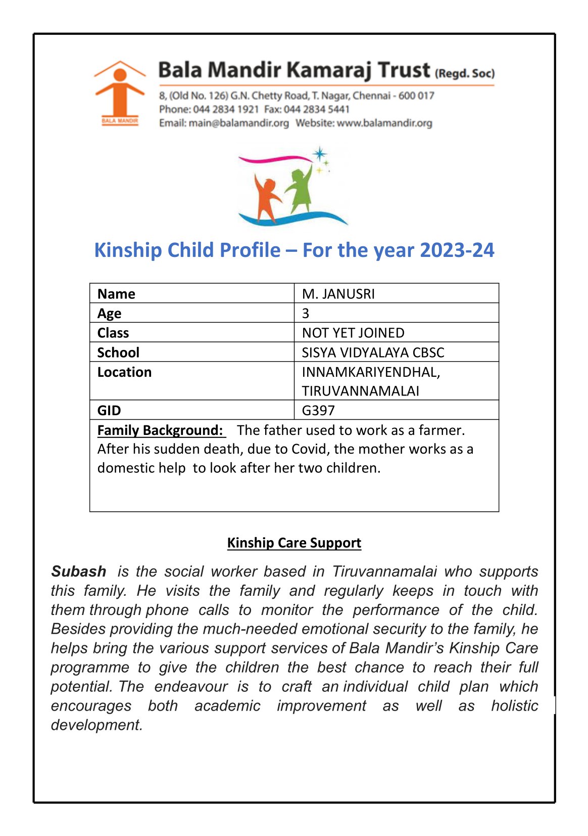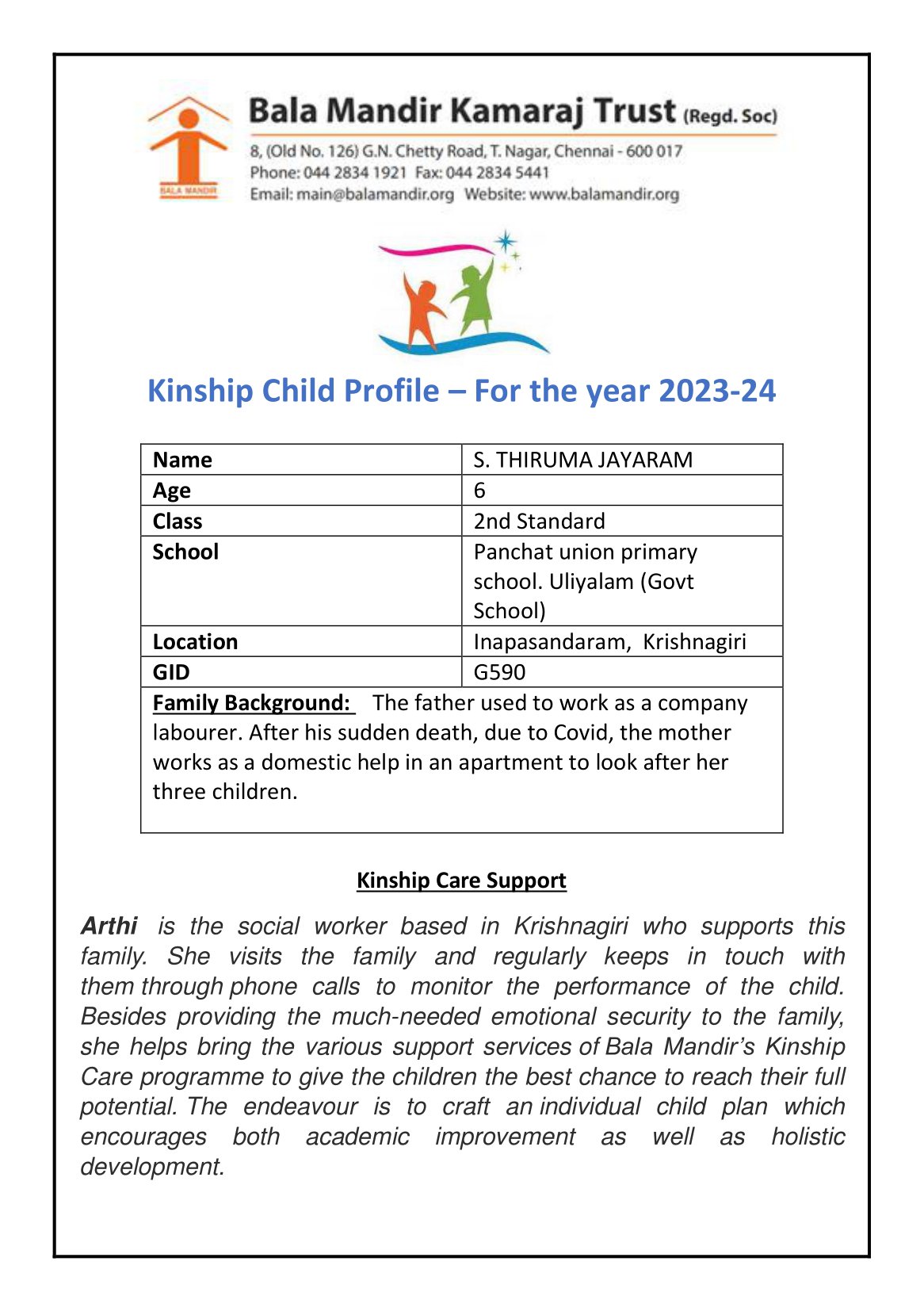 ABOUT THE BALA MANDIR KAMARAJ TRUST (BMKT):