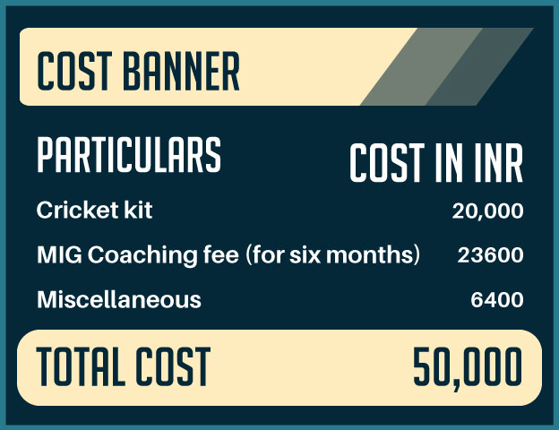 Through this campaign, I aim to ease the financial burden on Amit's family by raising funds for his cricket kit, which costs around INR 20,000, and for six months of coaching at the prestigious MIG Cricket Club in Bandra, Mumbai, which amounts to INR 23,600. These costs are substantial, and by contributing to this campaign, you can make a significant difference in Amit's journey to become a professional cricketer.