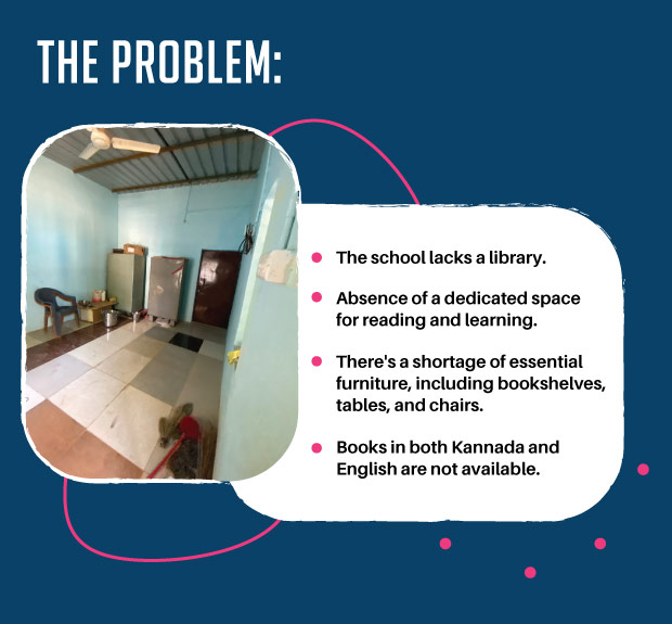 This makes it tough for kids to get into reading and learning. They really need a well-equipped library with books in Kannada and English. That way, they can start loving learning in a space that's made for it.