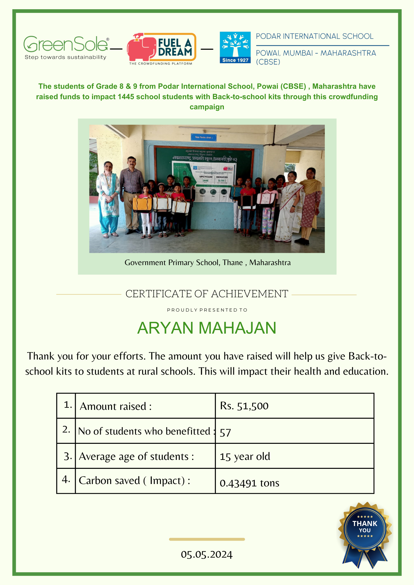 I have undertaken this campaign because I was surprised to learn that many students from low-income homes in Maharashtra, who go to school (mainly govt schools) do not have basic school gear like proper footwear or a school bag and often sit on the hard ground in order to study at school.