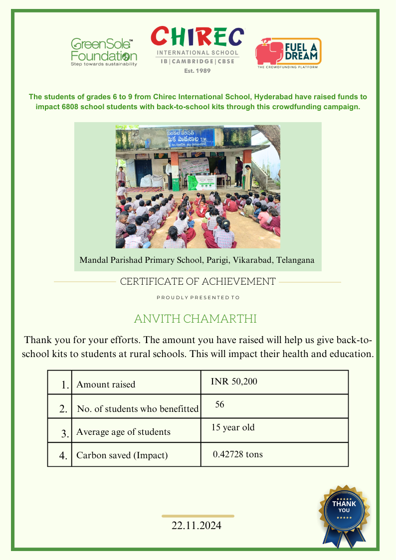 I have undertaken this campaign because I was surprised to learn that many students from low-income homes in Telangana, who go to school (mainly govt schools) do not have basic school gear like proper footwear or a school bag and often sit on the hard ground in order to study at school.