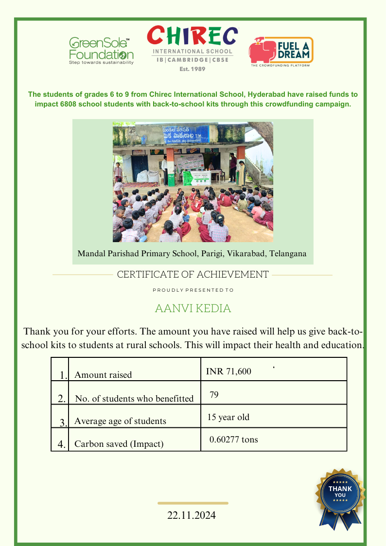 I have undertaken this campaign because I was surprised to learn that many students from low-income homes in Telangana, who go to school (mainly govt schools) do not have basic school gear like proper footwear or a school bag and often sit on the hard ground in order to study at school.