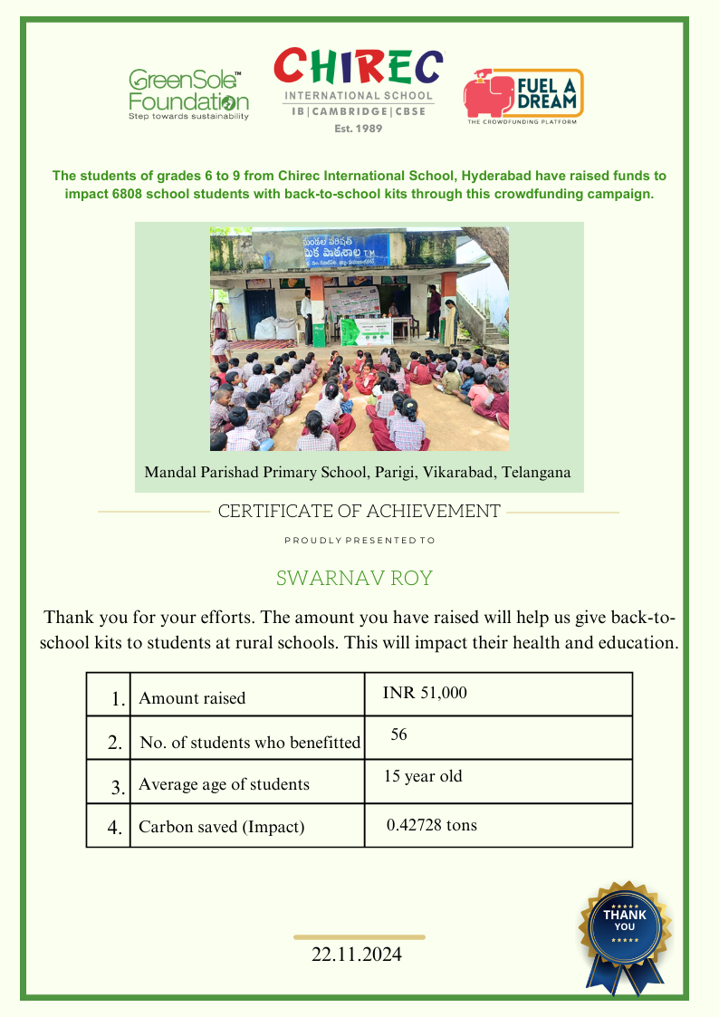 I have undertaken this campaign because I was surprised to learn that many students from low-income homes in Telangana, who go to school (mainly govt schools) do not have basic school gear like proper footwear or a school bag and often sit on the hard ground in order to study at school.
