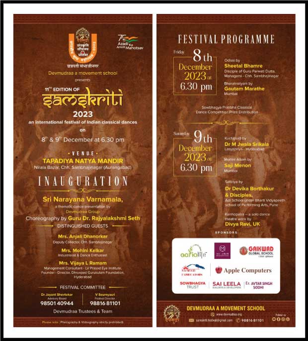 In the rhythmic heart of Chhatrapati Sambhajinagar, the vibrant city with the echoes of UNESCO heritage sites like Ajanta Ellora Caves, Devmudraa, a movement school and NGO, is gearing up for the triumphant return of Samskriti, a festival of classical dances, now in its 11th year.