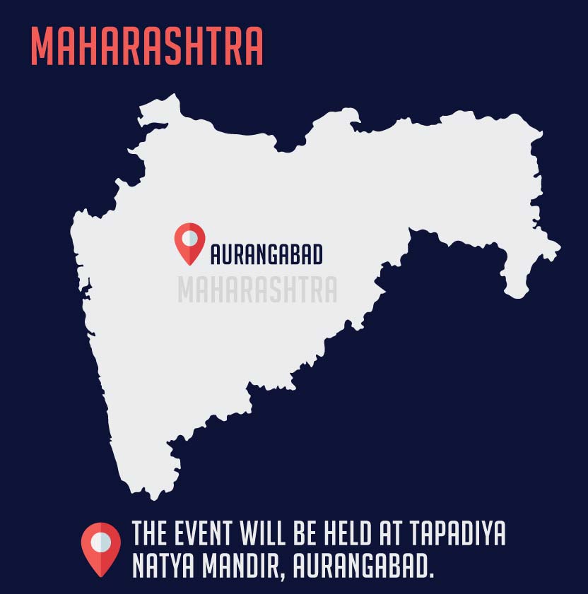 The event is scheduled for December 8th and 9th, 2023, at Tapadiya Natya Mandir, Chh. Sambhajinagar, Aurangabad, with a capacity for 700 people.