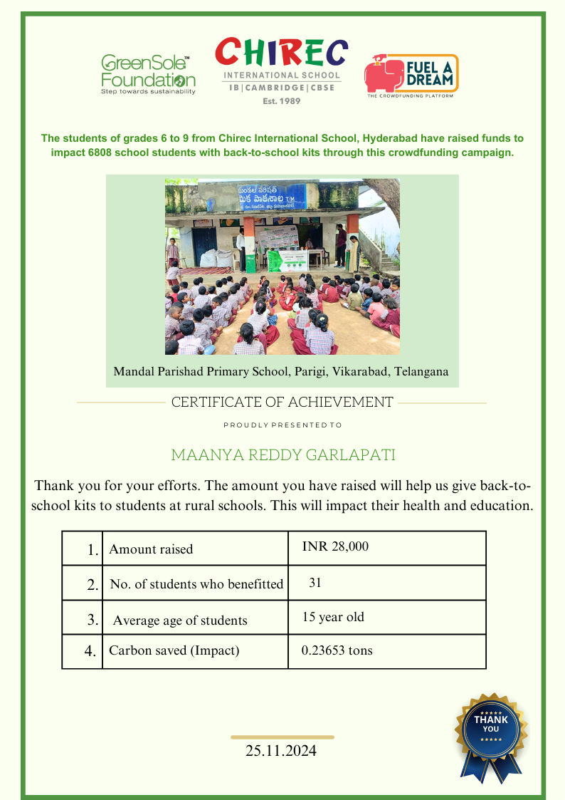 I have undertaken this campaign because I was surprised to learn that many students from low-income homes in Telangana, who go to school (mainly govt schools) do not have basic school gear like proper footwear or a school bag and often sit on the hard ground in order to study at school.