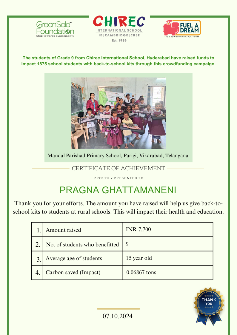I have undertaken this campaign because I was surprised to learn that many students from low-income homes in Telangana, who go to school (mainly govt schools) do not have basic school gear like proper footwear or a school bag and often sit on the hard ground to study at school.