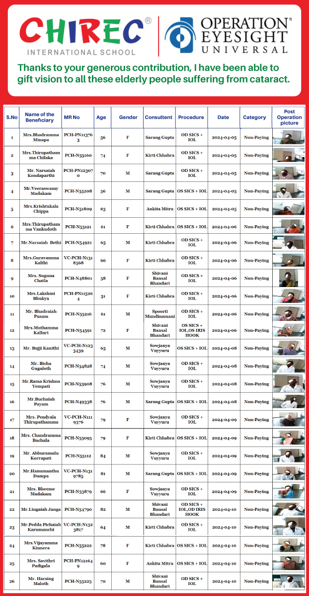 This highlights the pressing need to raise just INR 3,200 per surgery to bestow the invaluable Gift of Sight.
