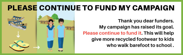 The money raised will be given directly after the campaign ends to the NGO. They will then use the funds to transform the lives of children from rural villages by providing them with recycled footwear. You will get an update on how many students in which school benefitted from your funding.