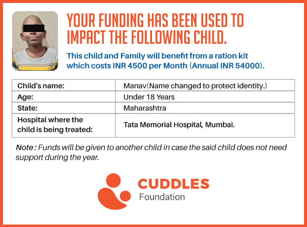 I have undertaken this campaign because this is a critical element in the treatment of these children who go through the difficult journey of fighting cancer. Although there are several people and organizations which sponsor the treatment of financially stressed patients, there are very few that help out with an equally important issue - "THEIR FOOD AND NUTRITION".
