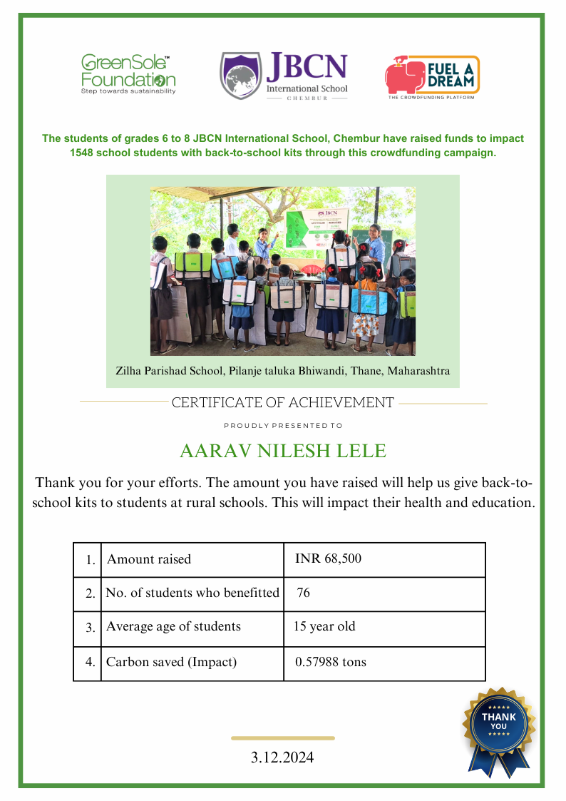 My name is AARAV NILESH LELE. I am 12-years-old and a Grade 7 student at the JBCN Intl School, Chembur, Mumbai, Maharashtra.