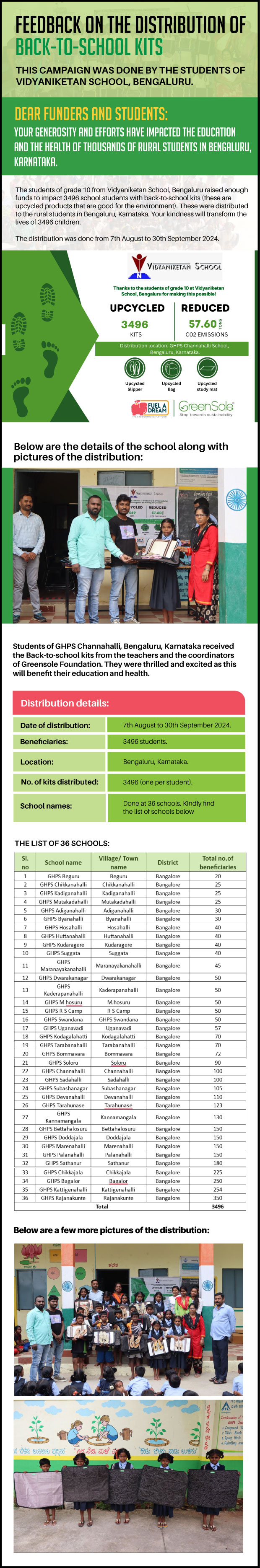 I have undertaken this campaign because I was surprised to learn that many students from low-income homes in Karnataka, who go to school (mainly govt schools) do not have basic school gear like proper footwear or a school bag and often sit on the hard ground in order to study at school.