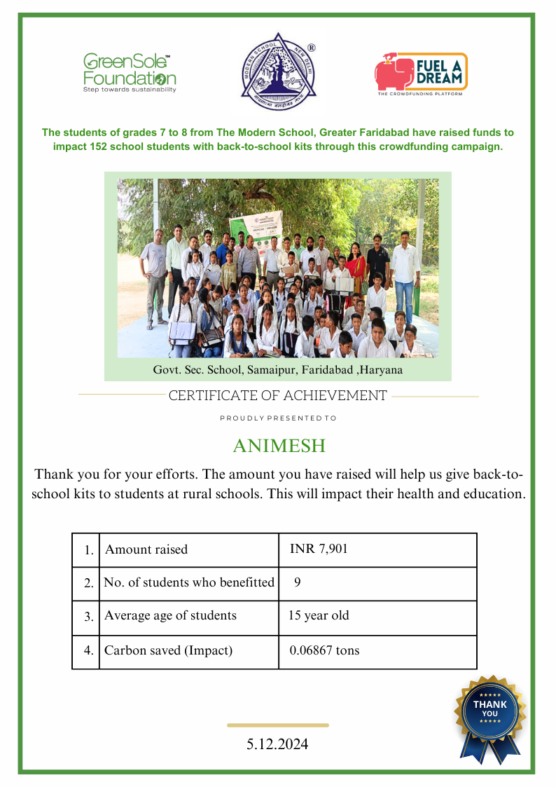 I have undertaken this campaign because I was surprised to learn that many students from low-income homes in Haryana, who go to school (mainly govt schools) do not have basic school gear like proper footwear or a school bag and often sit on the hard ground in order to study at school.