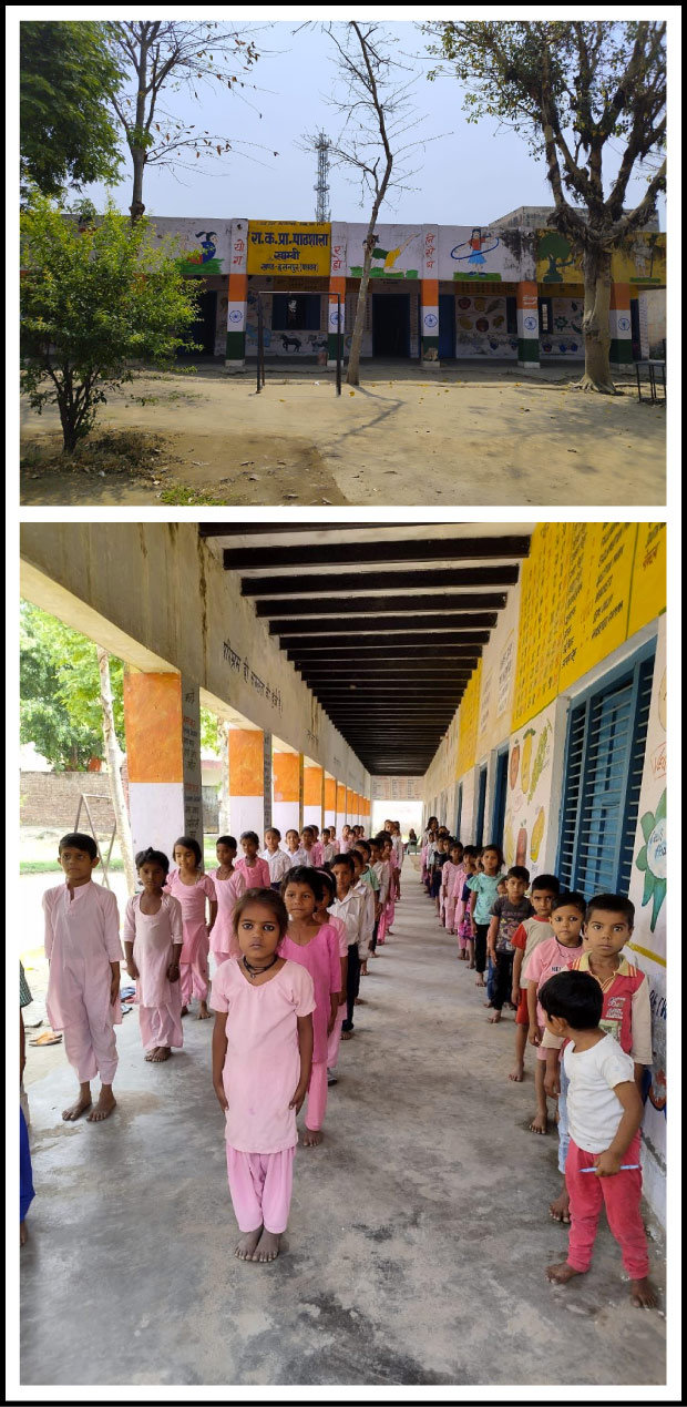 PIC: The picture shows the facade of the school and students from GGPS Khanbi Government School, Palwal.