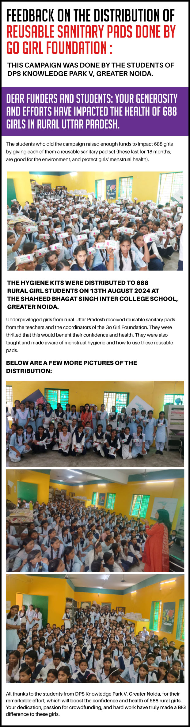 Funding for this campaign is eligible for tax breaks as GO GIRL FOUNDATION is a registered NGO and you can avail of benefits under section 80G of the IT Act. Foreign funding is NOT accepted.