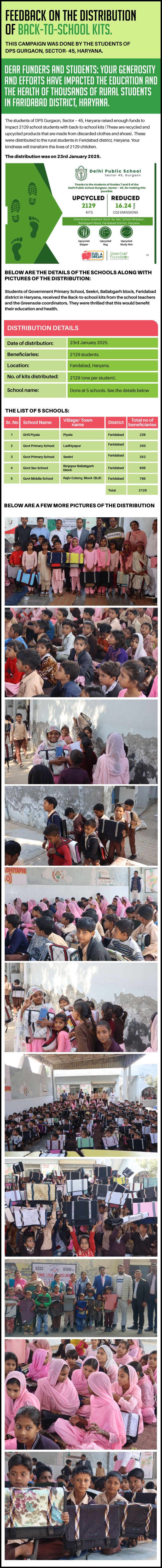 I have undertaken this campaign because I was surprised to learn that many students from low-income homes in Haryana, who go to school (mainly govt schools) do not have basic school gear like proper footwear or a school bag and often sit on the hard ground in order to study at school.