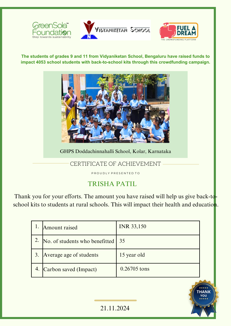 My name is Trisha Patil. I am 14-years-old and a Grade 9 student at Vidyaniketan School, Bengaluru.