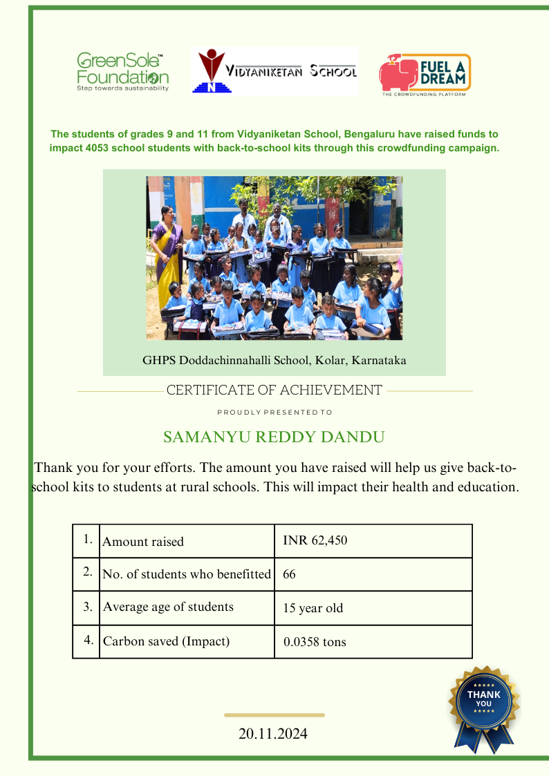 My name is Samanyu. I am 14-years-old and a Grade 9 student at Vidyaniketan School, Bengaluru.