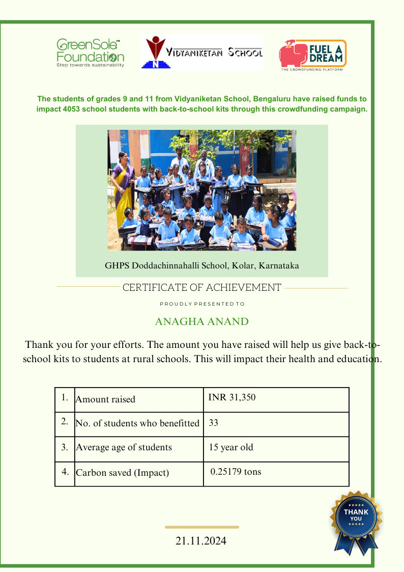 To ensure that there is complete transparency I shall get a report from the NGO (this takes between 1 to 3 months usually after the funds are raised and transferred to them) telling me who benefitted from the funding. The details will then be posted in the UPDATES section of my campaign. As soon as I post an update, the platform will send an EMAIL alert to all the funders - i.e. to you. Click on the link in the email and you can read about who benefitted. That's transparent, right?