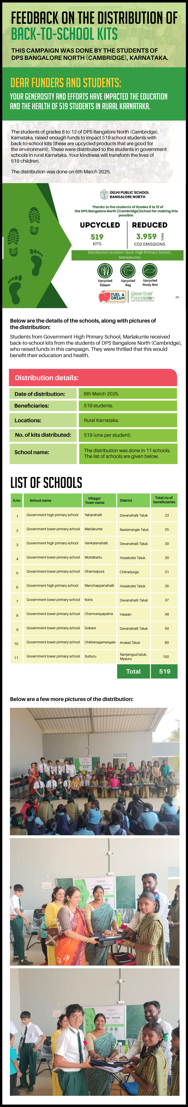 I have undertaken this campaign because I was surprised to learn that many students from low-income homes in Karnataka, who go to school (mainly govt schools) do not have basic school gear like proper footwear or a school bag and often sit on the hard ground in order to study at school.