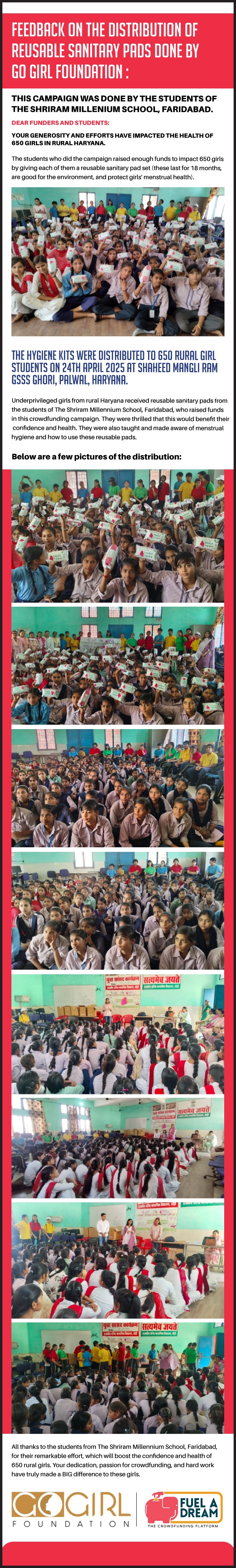 Funding for this campaign is eligible for tax breaks as GO GIRL FOUNDATION is a registered NGO and you can avail of benefits under section 80G of the IT Act. Foreign funding is NOT accepted.