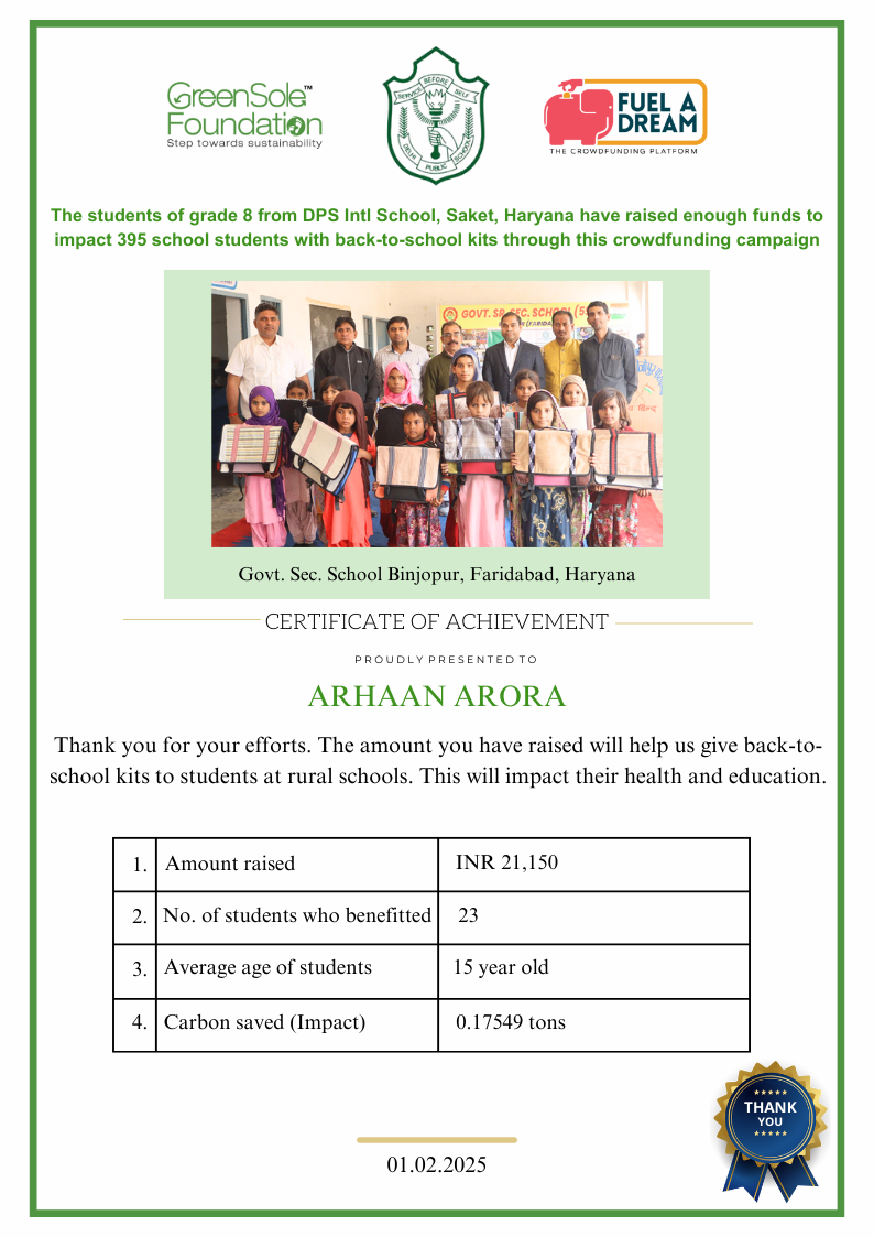 I have undertaken this campaign because I was surprised to learn that many students from low-income homes in Haryana, who go to school (mainly govt schools) do not have basic school gear like proper footwear or a school bag and often sit on the hard ground in order to study at school.