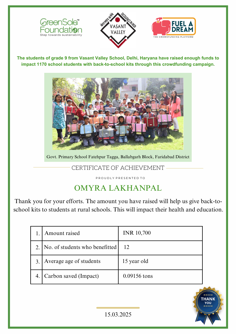 I have undertaken this campaign because I was surprised to learn that many students from low-income homes in Haryana, who go to school (mainly govt schools) do not have basic school gear like proper footwear or a school bag and often sit on the hard ground in order to study at school.