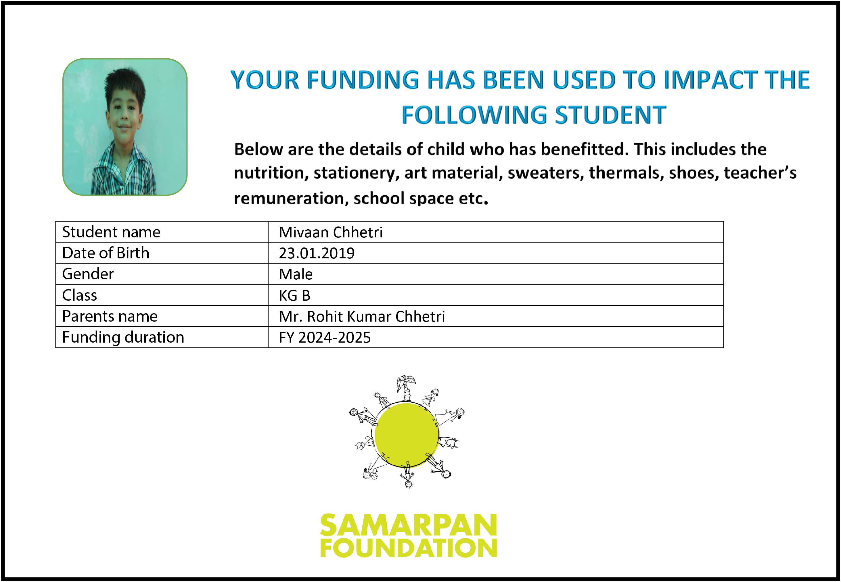 To ensure that there is complete transparency I shall get a report from SAMARPAN FOUNDATION This takes between 1 to 3 months usually after the funds are raised & transferred to them) telling me who benefitted from the funding. The details will then be posted on the UPDATES section of my campaign and will be in a format like the one below. As soon as I post an update the platform will send an EMAIL alert to all the funders. i.e. to you. Click on the link in the email and you can read about which child benefitted. That's transparent, right?