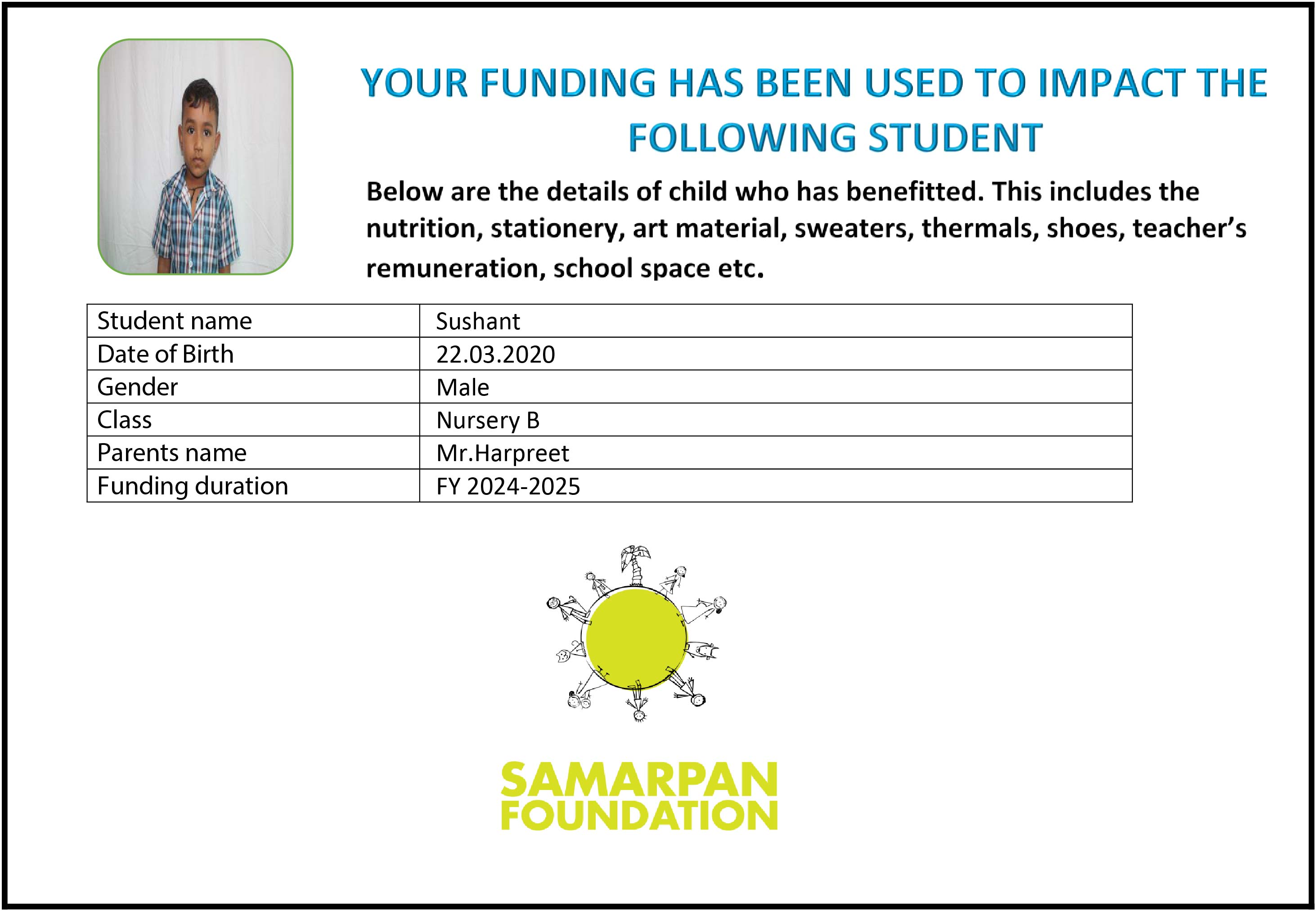 To ensure that there is complete transparency I shall get a report from SAMARPAN FOUNDATION This takes between 1 to 3 months usually after the funds are raised & transferred to them) telling me who benefitted from the funding. The details will then be posted on the UPDATES section of my campaign and will be in a format like the one below. As soon as I post an update the platform will send an EMAIL alert to all the funders. i.e. to you. Click on the link in the email and you can read about which child benefitted. That's transparent, right?