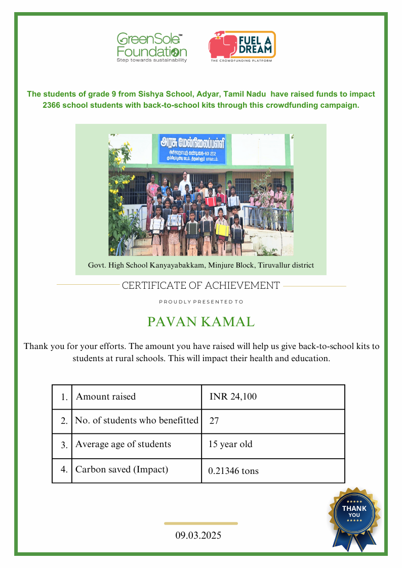 If more funds are raised, the back-to-school kits will be distributed to more schools in Tamil Nadu.