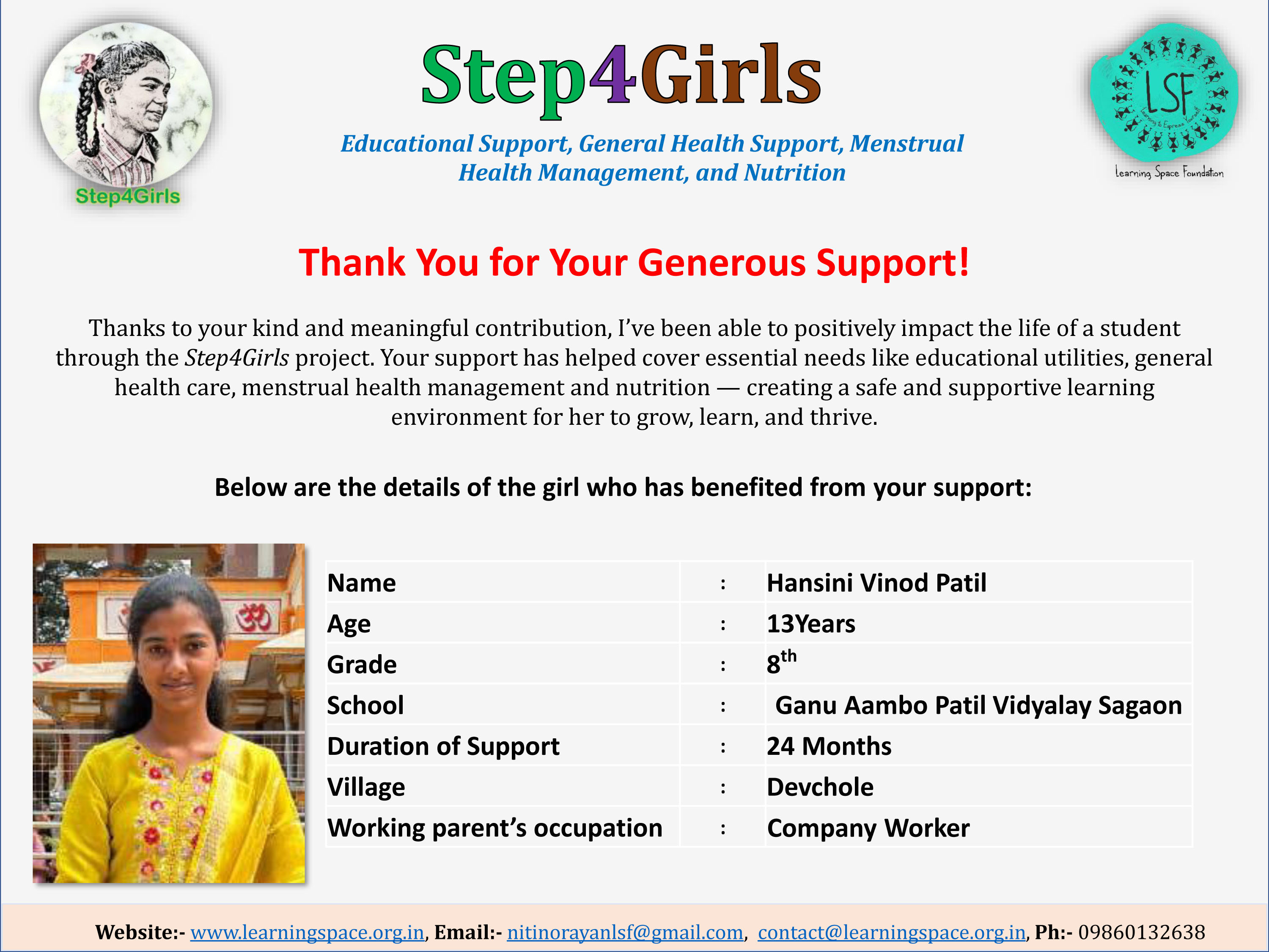 Please support my campaign as a simple act of kindness can have a profound impact on a girl's life. Let us together lend a helping hand and transform their lives.