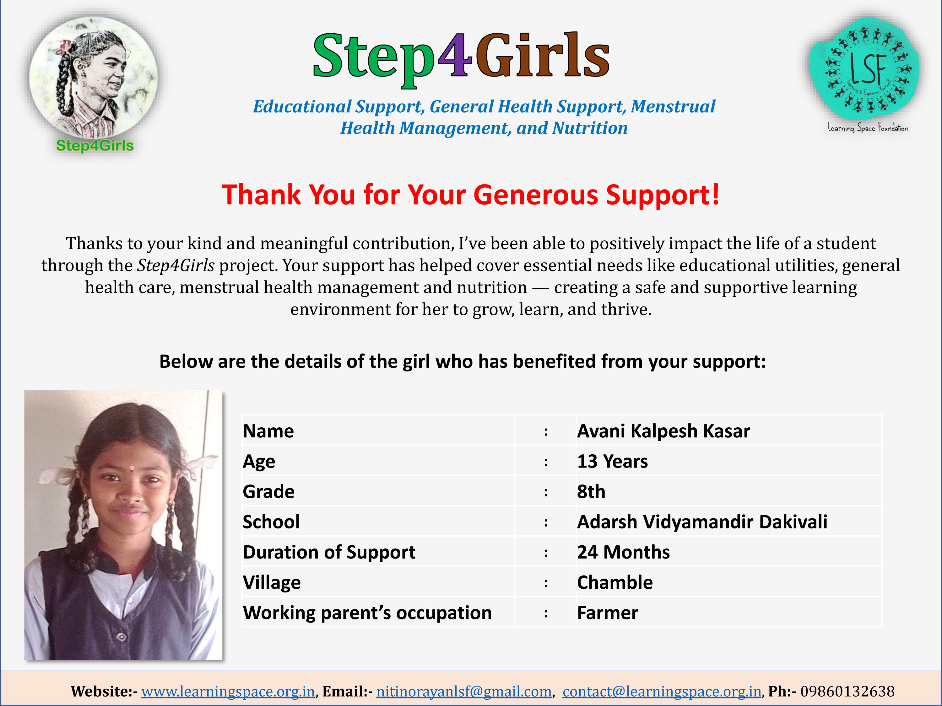 Please support my campaign as a simple act of kindness can have a profound impact on a girl's life. Let us together lend a helping hand and transform their lives.