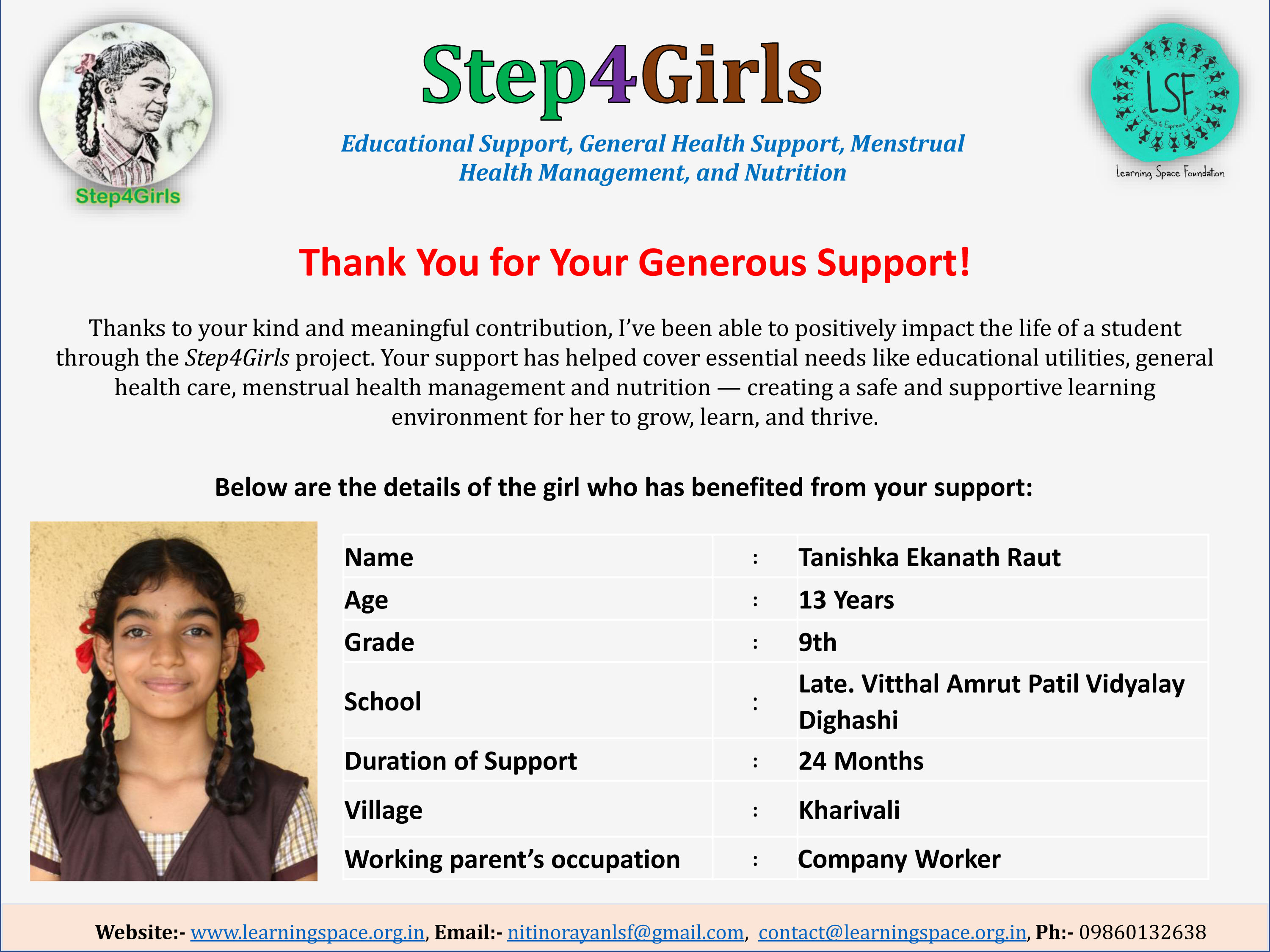Please support my campaign as a simple act of kindness can have a profound impact on a girl's life. Let us together lend a helping hand and transform their lives.
