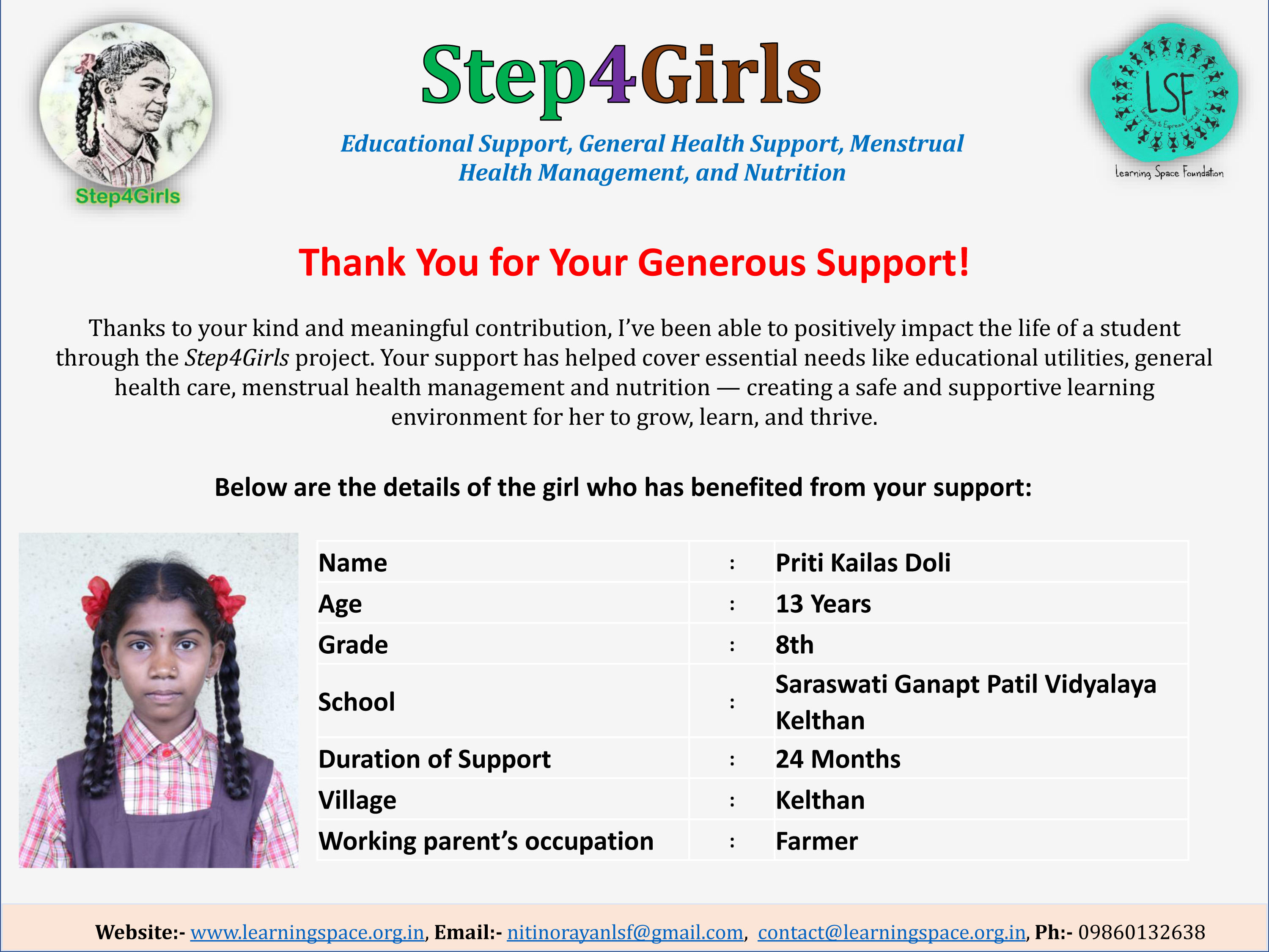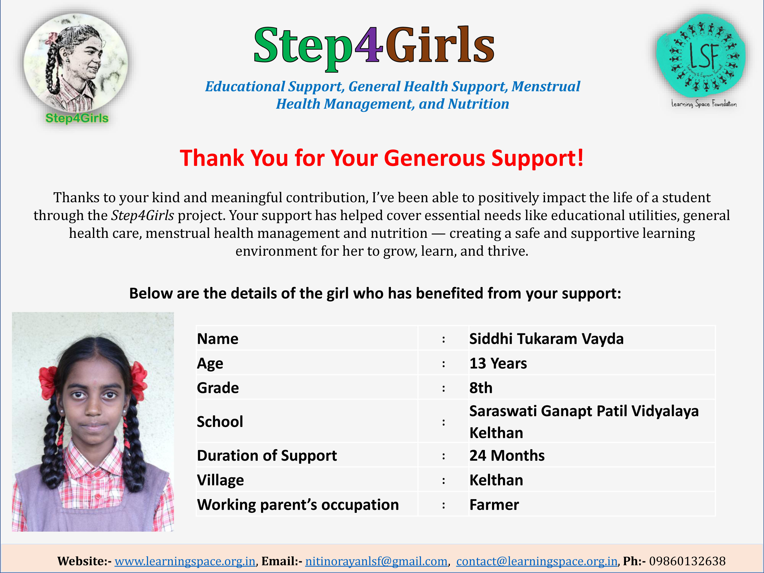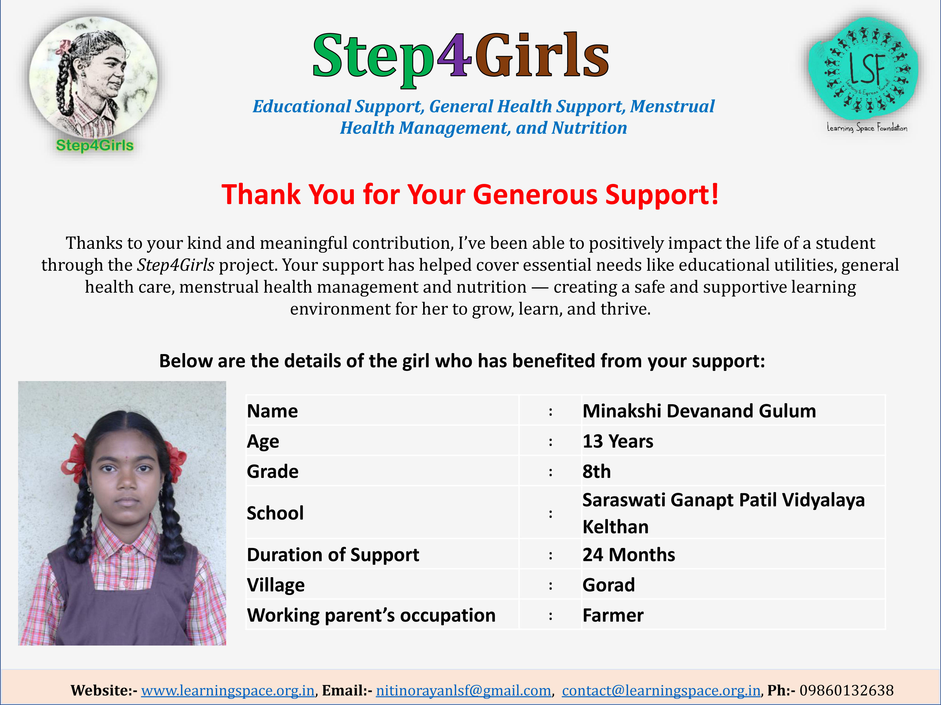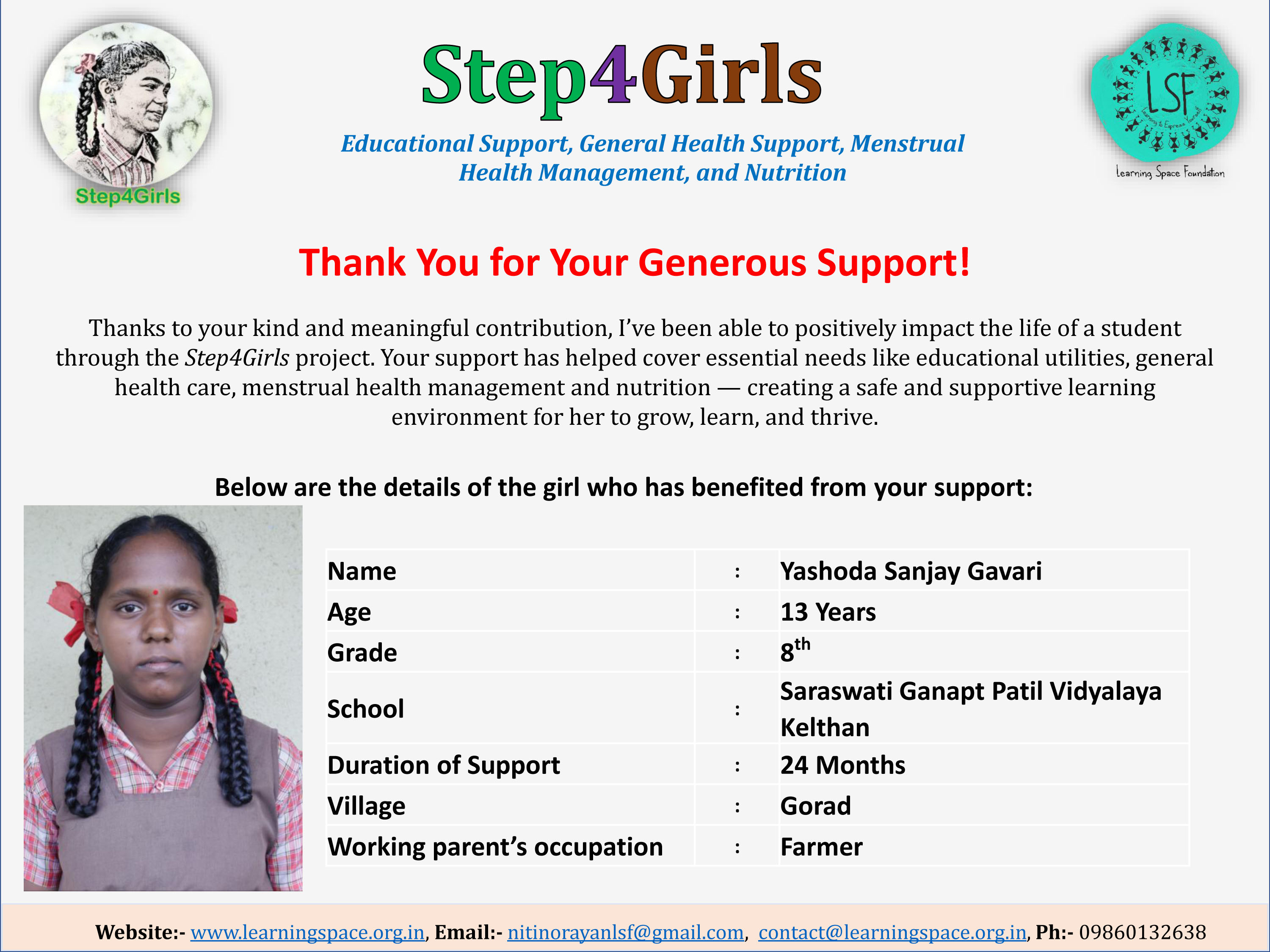 Please support my campaign as a simple act of kindness can have a profound impact on a girl's life. Let us together lend a helping hand and transform their lives.