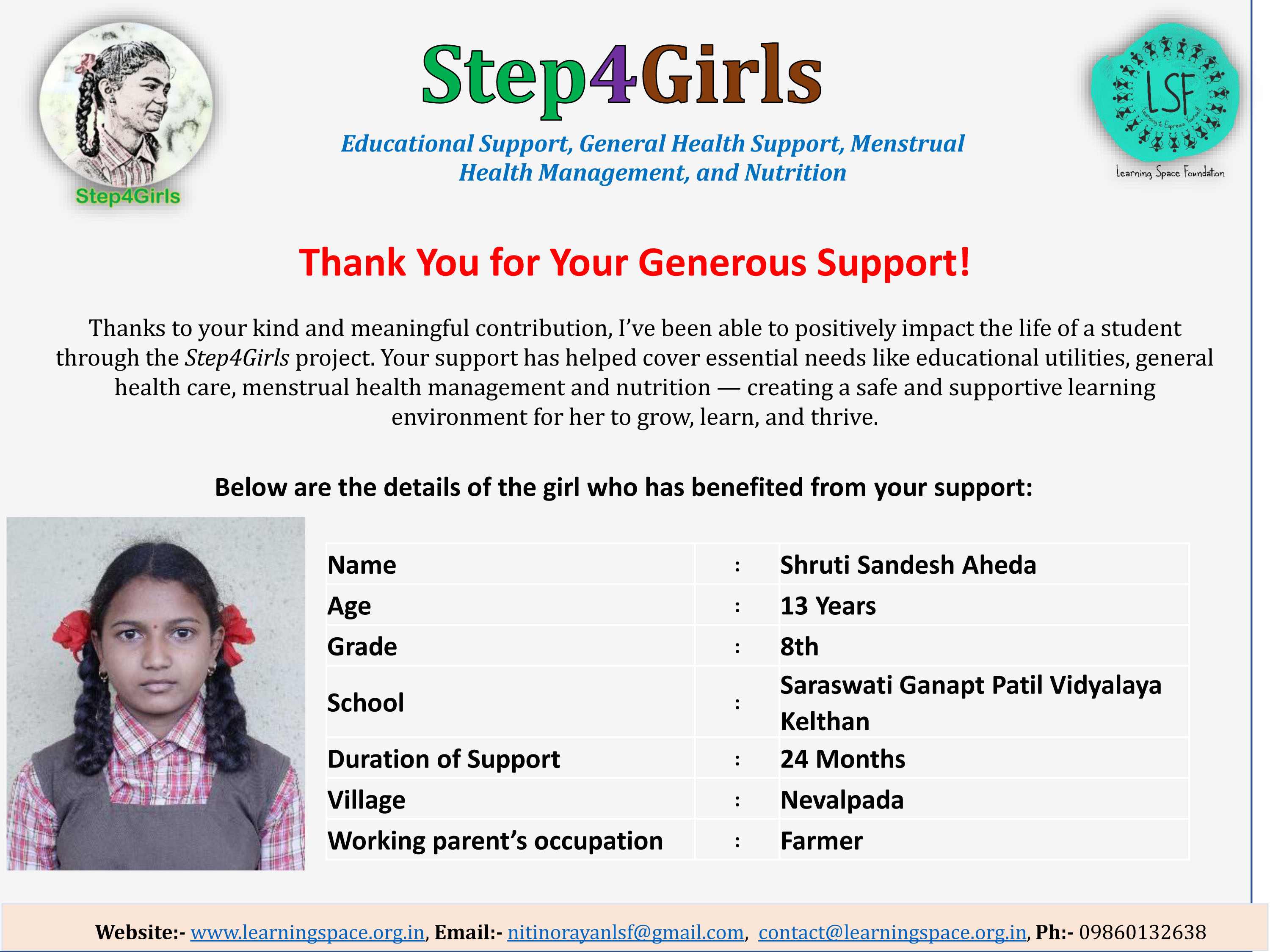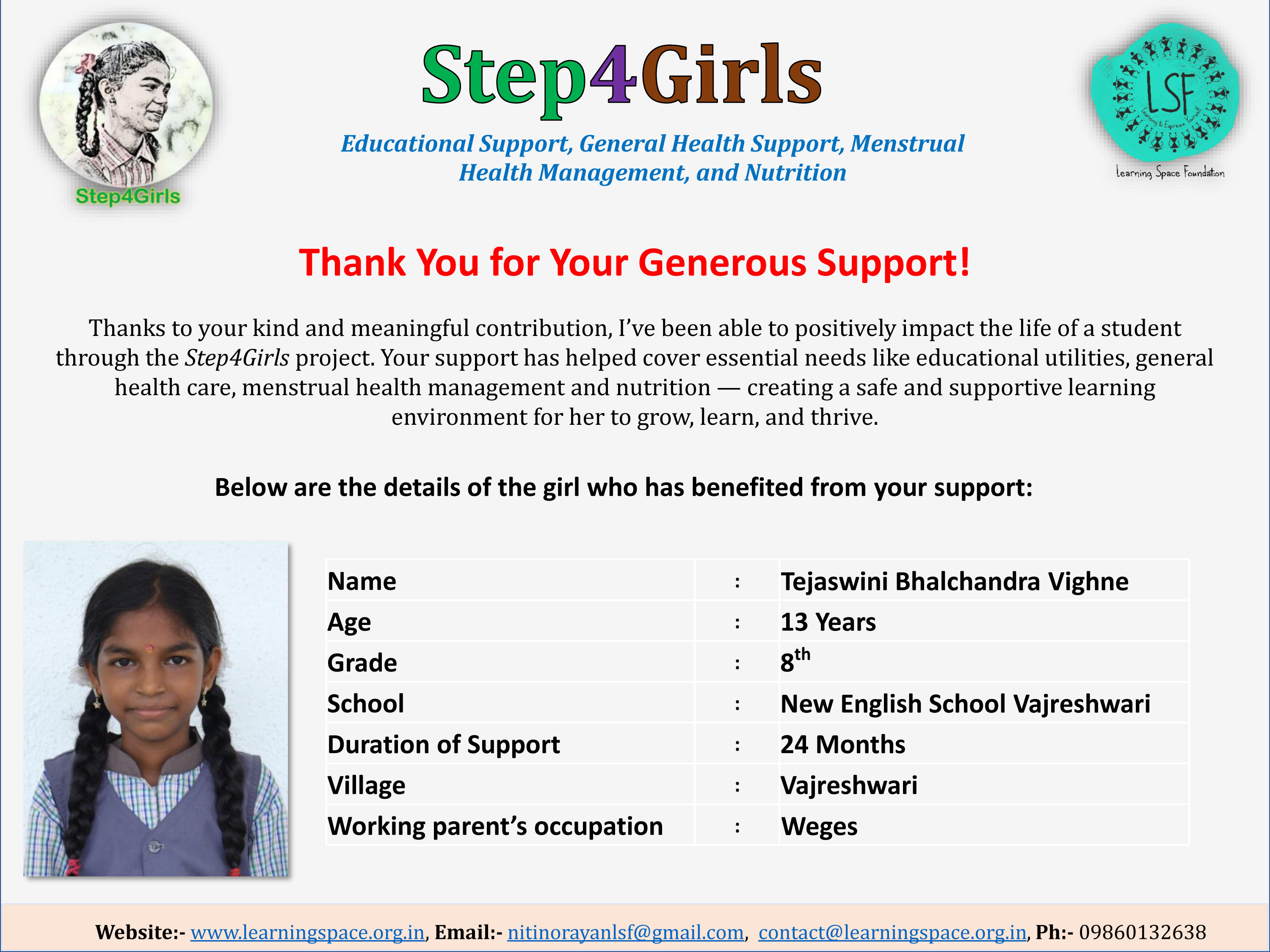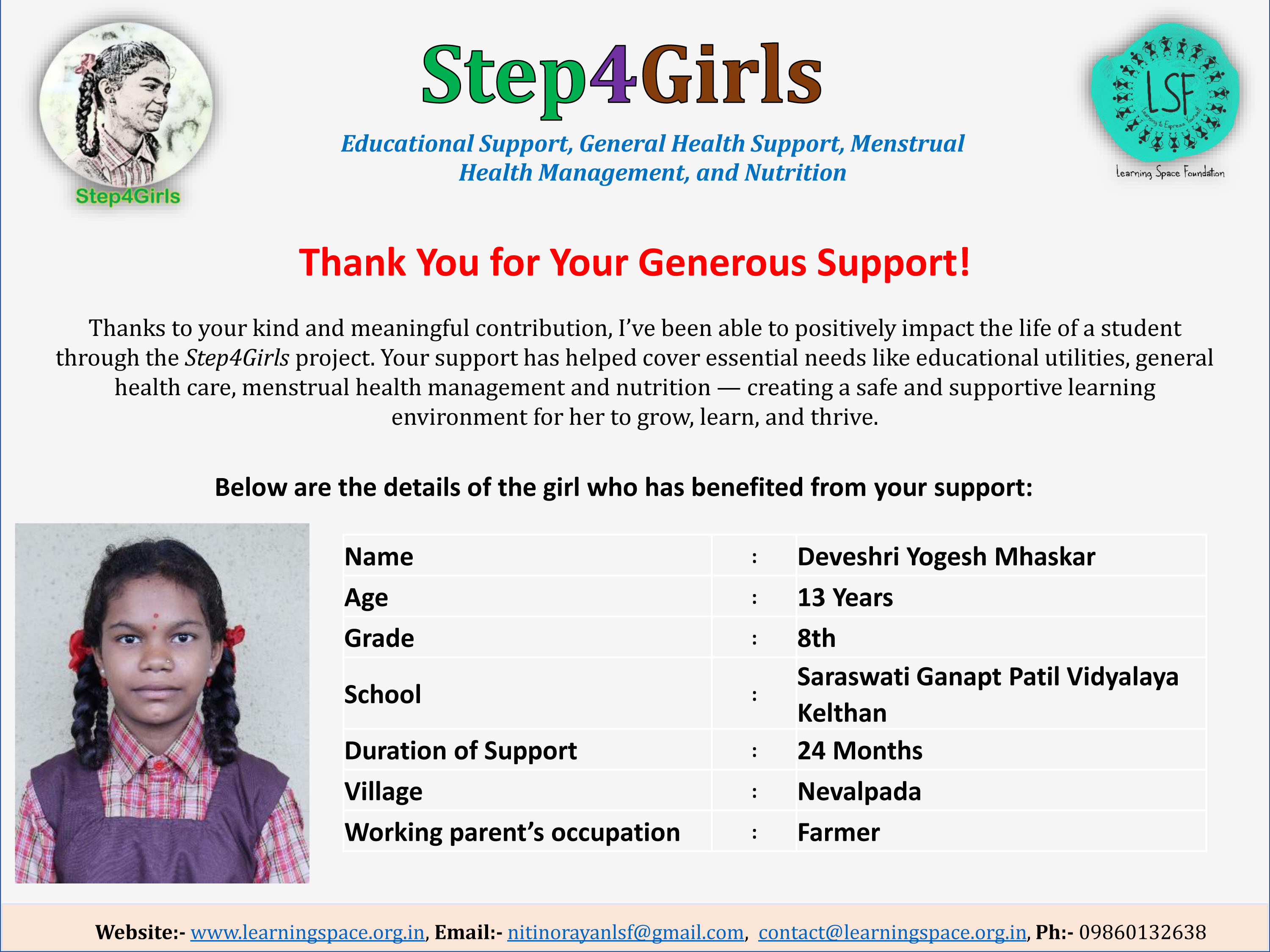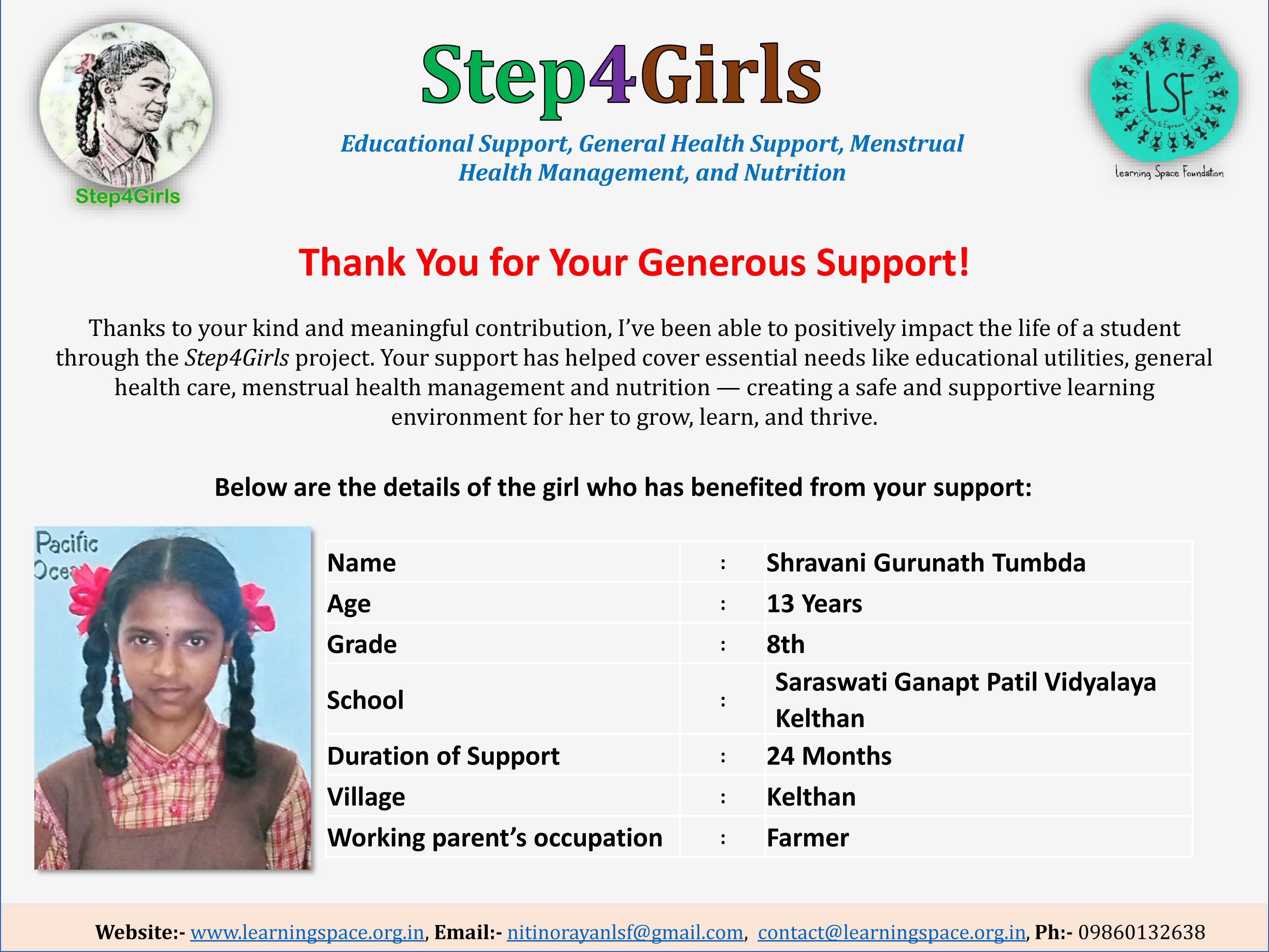 Please support my campaign as a simple act of kindness can have a profound impact on a girl's life. Let us together lend a helping hand and transform their lives.