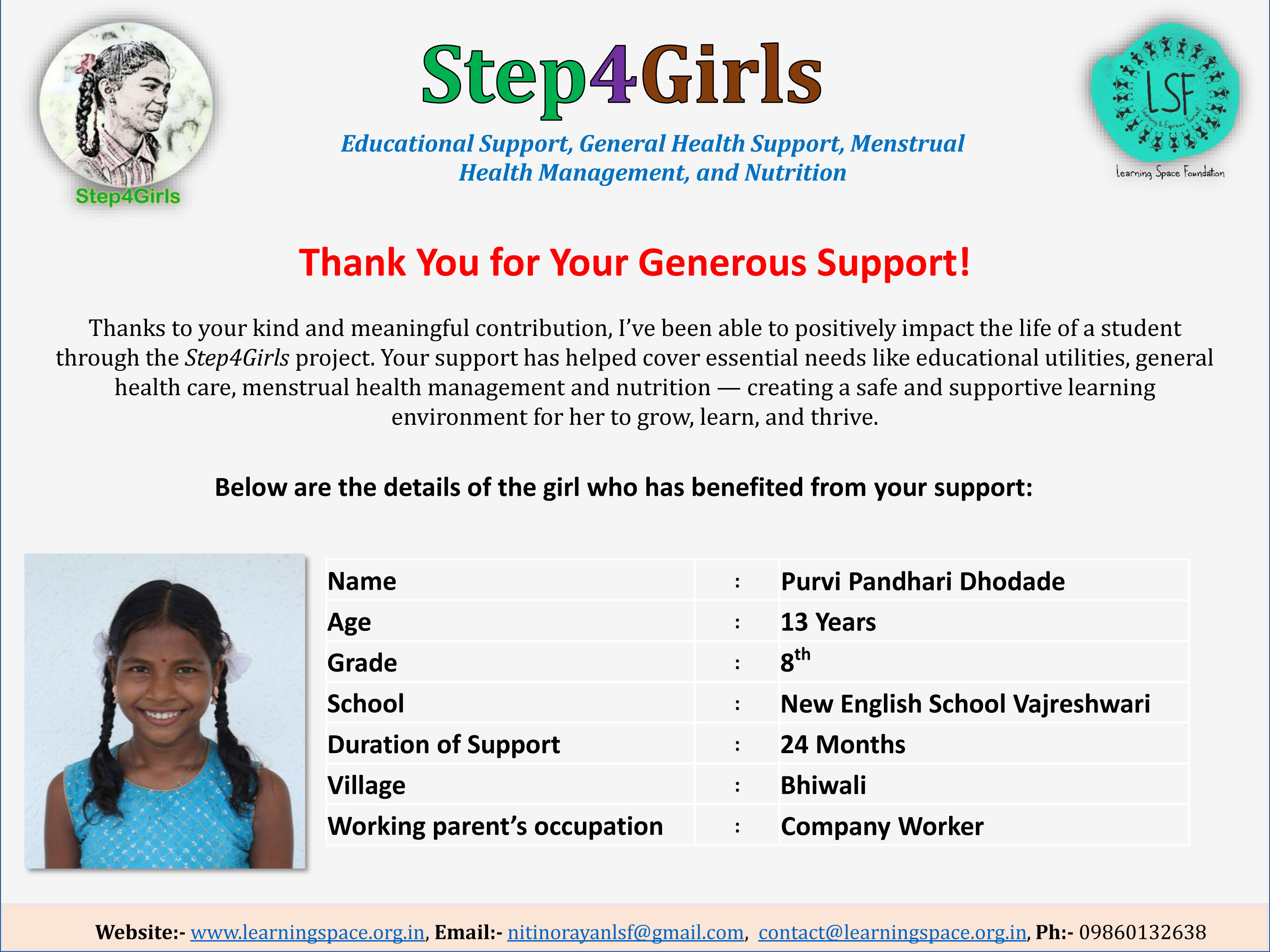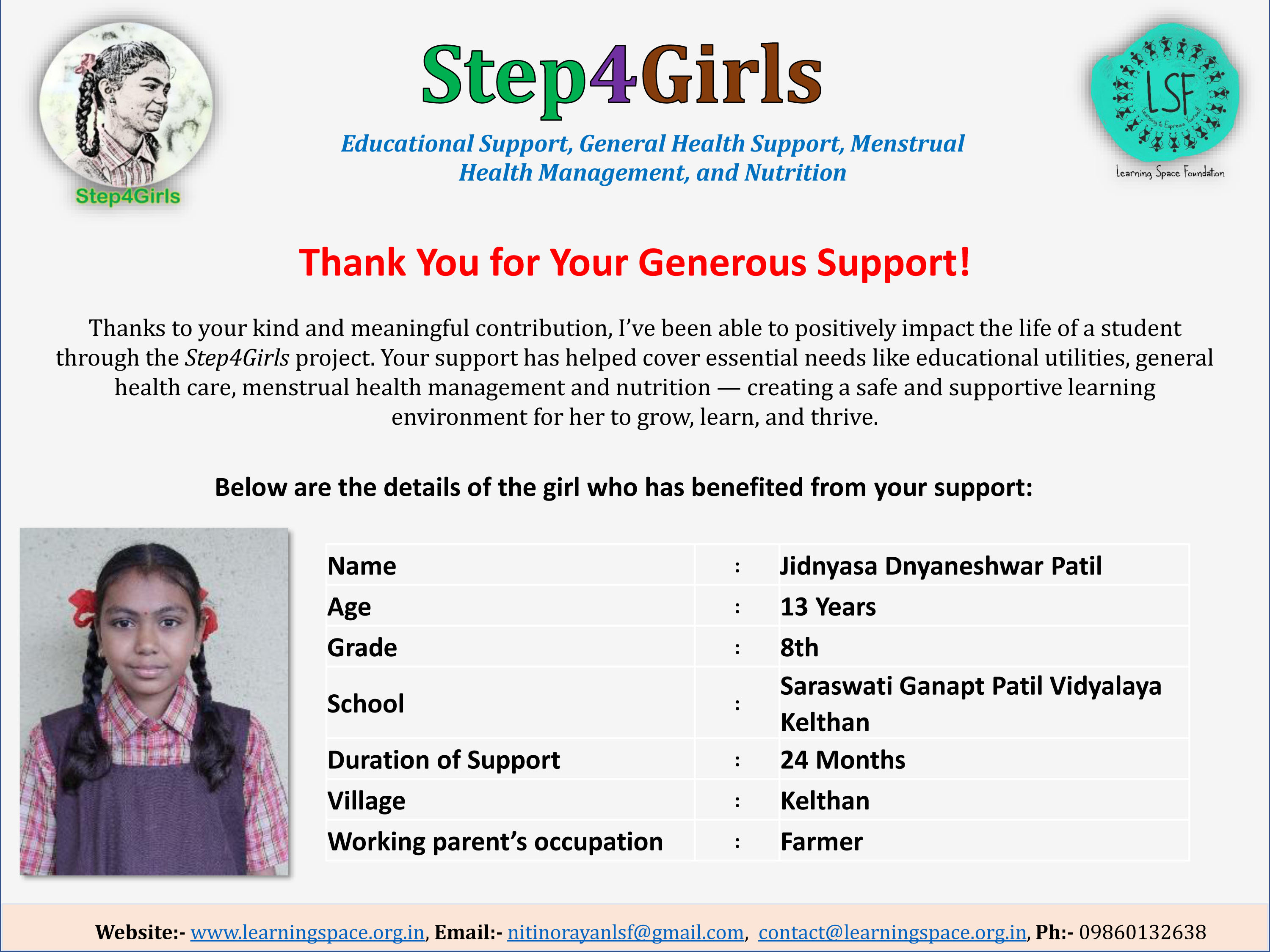 I was thrilled to learn about this initiative that provides education to tribal girls in Palghar and Thane districts. This will help them continue their education and achieve their dreams. Just INR 12000 will support their education for an entire year.