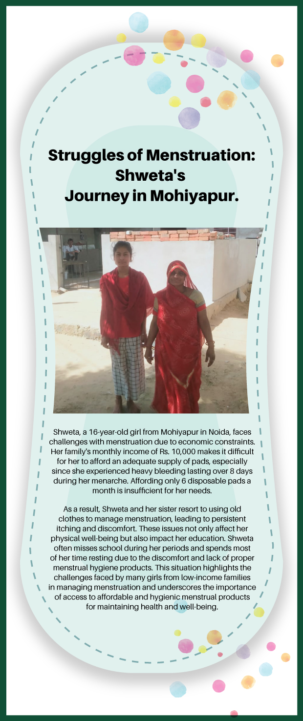 For women and girls in homes that we come from, sanitary pads are the norm and not a luxury. Shockingly, around 80% of women in India are forced to resort to unhygienic alternatives like rags, ash, or even leaves during their menstrual cycles due to a lack of access to proper menstrual hygiene products. This lack of access contributes to 23% of girls dropping out of school once they start menstruating, as they are unable to manage their periods safely and with dignity.