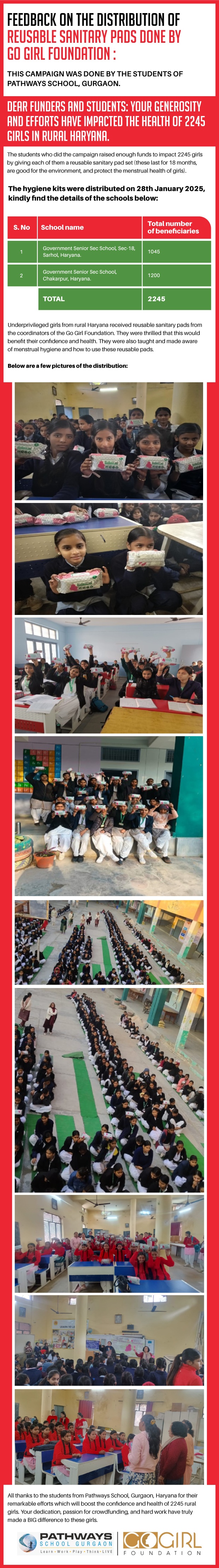 PIC: Students from Govt. Higher Secondary Schools, in Gokalgarh, Rewari district, and Mastapur districts in Haryana received the menstrual hygiene kits from their teachers and the NGO Coordinator. They were super excited about the training they had and the menstrual hygiene kits they received.