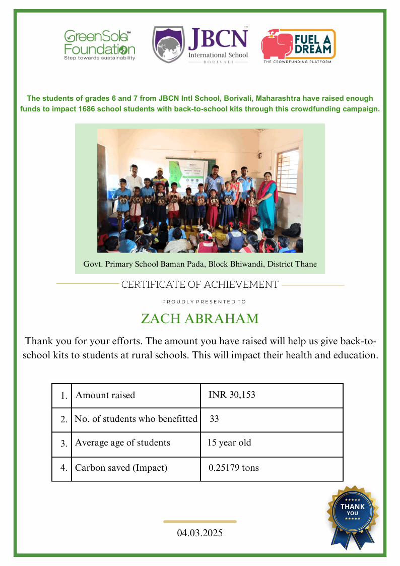 My name is Zach Abraham. I am 11-years-old and a Grade 6 student at the JBCN International School, Borivali.