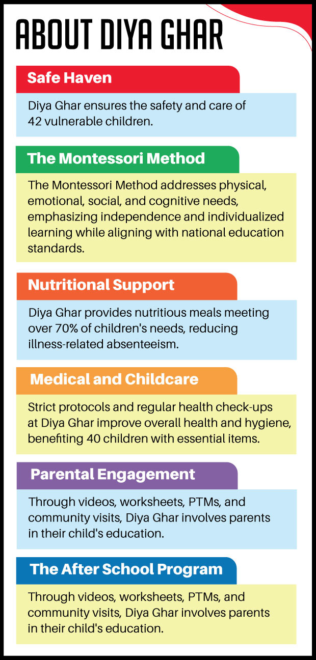 Over the past four years, it has transformed the lives of countless young learners. With its preschool education, nutritious meals, and safe transportation, Diya Ghar ensures a seamless transition to elementary schools.