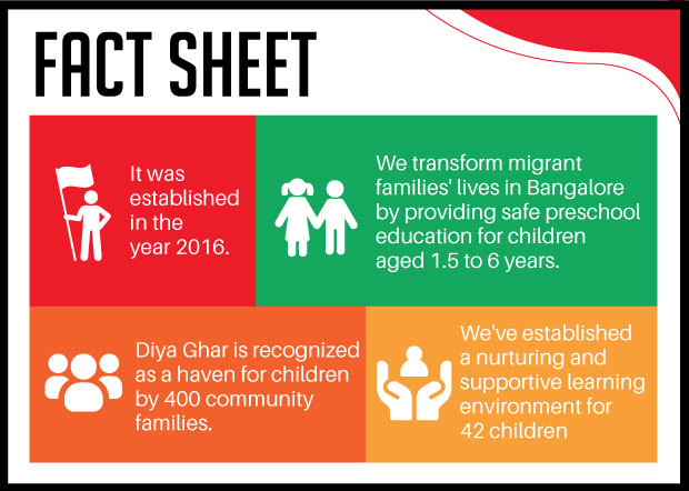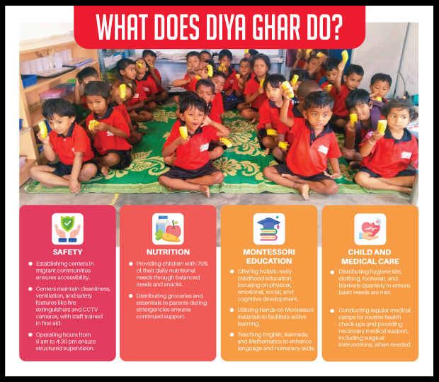Diya Ghar stands as a beacon of hope for migrant families in Bengaluru, prioritizing the education of children aged 1.5 to 6 years. They have 20 centers in Bengaluru for serving the children of the migrant community.