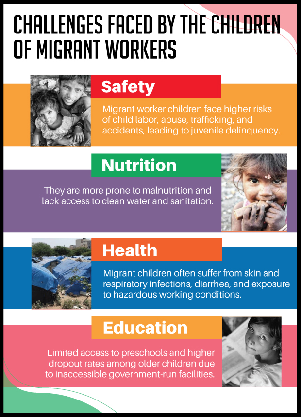 In Bengaluru city migrant labor settlements, 4 lakh migrant children lack essential care and education. Most are children of Bengali-speaking migrants, living in tin-and-tarpaulin sheds. Their parents, working as ragpickers and housekeepers, often have no choice but to bring them to work or leave them unattended.